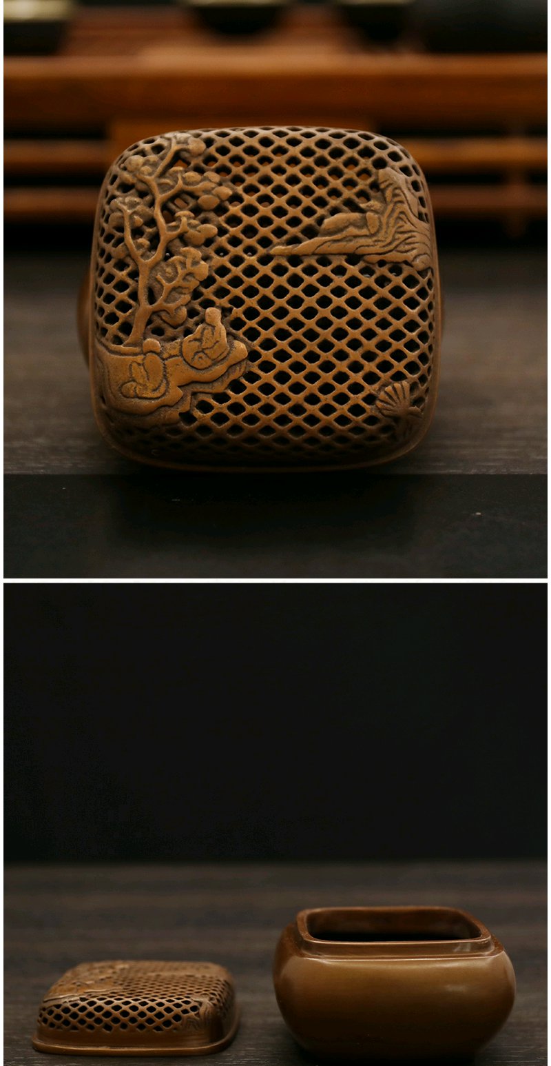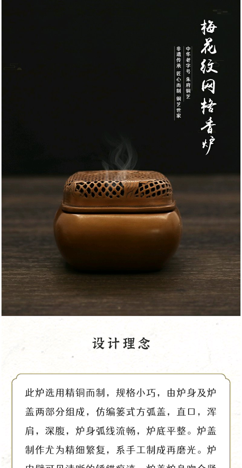 朱府铜艺网格盖香炉家用紫铜文房茶桌香道香薰沉香熏香炉纯铜摆件