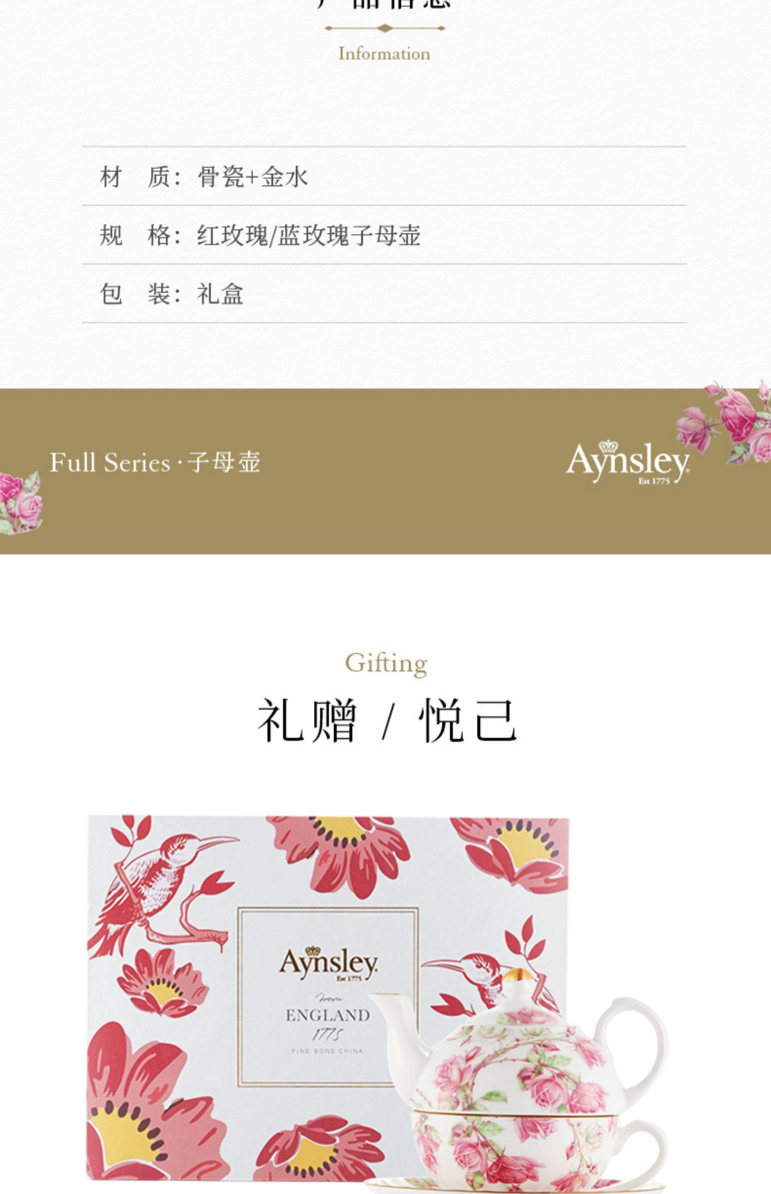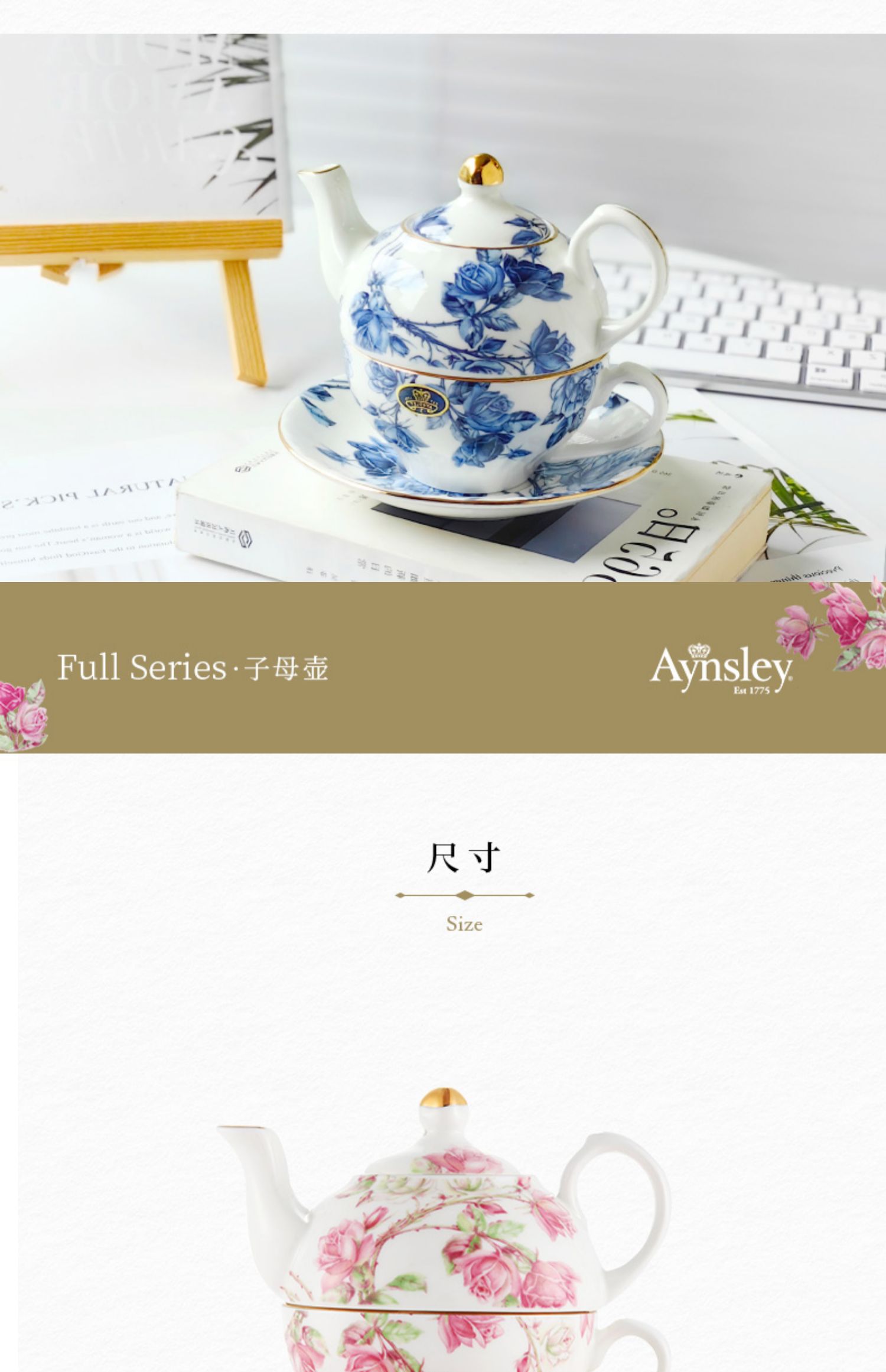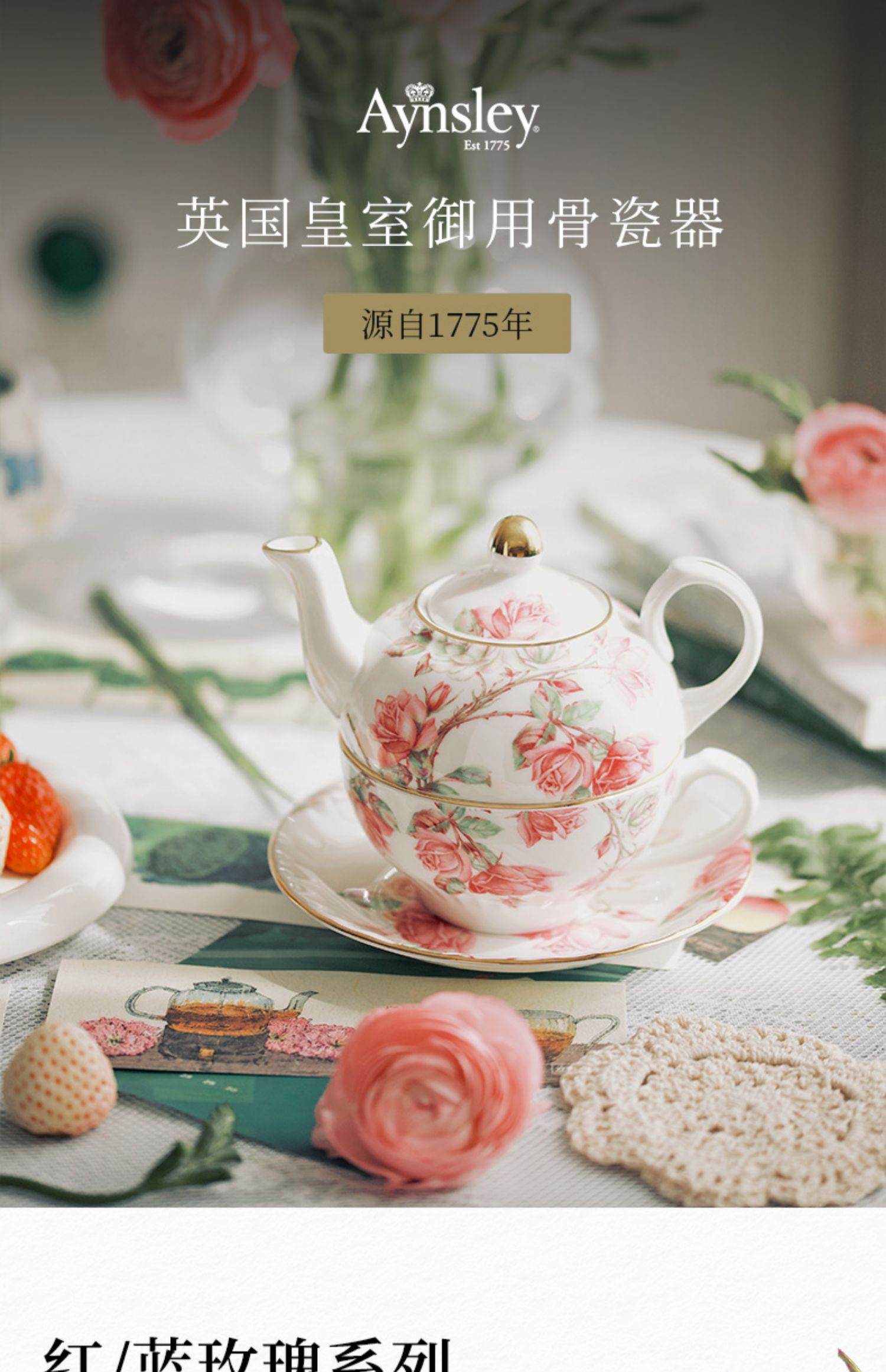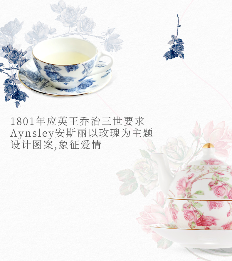 【清仓特惠6折】英国Aynsley安斯丽红蓝玫瑰骨瓷咖啡杯碟英式骨瓷子母壶杯碟家用