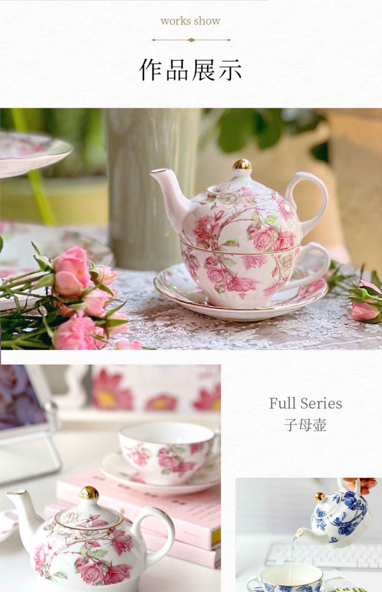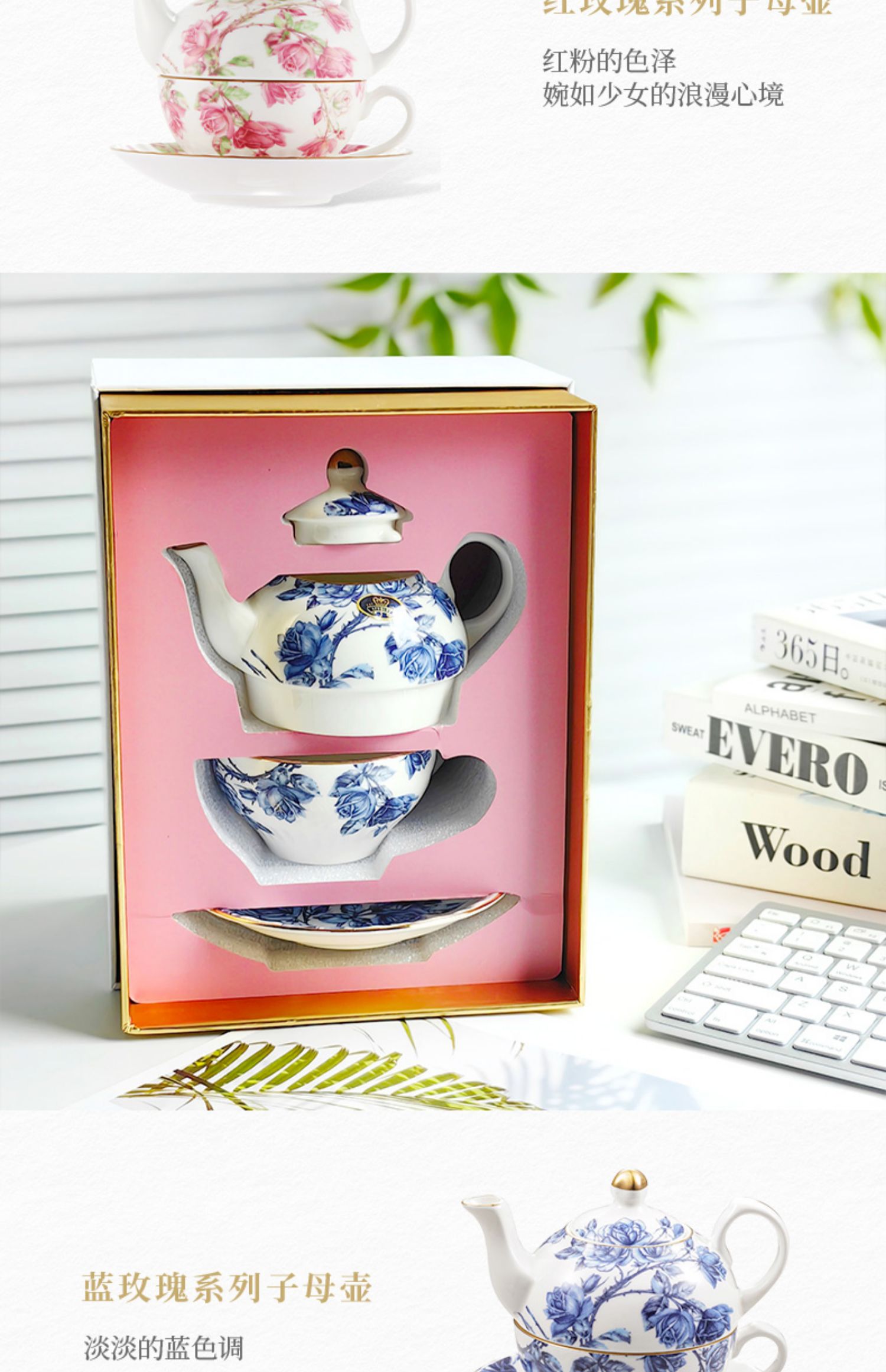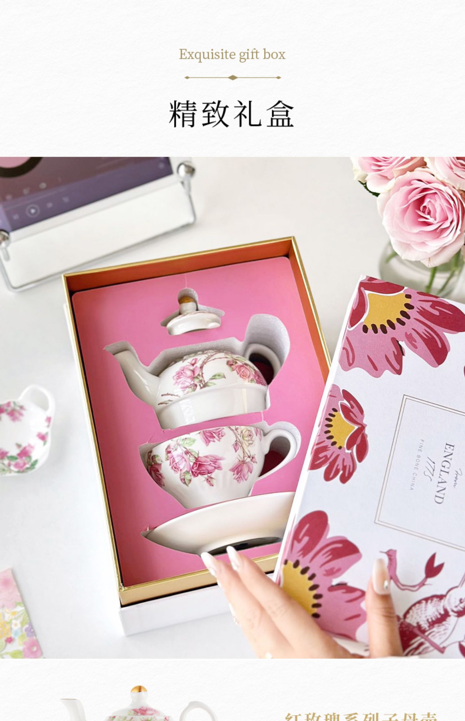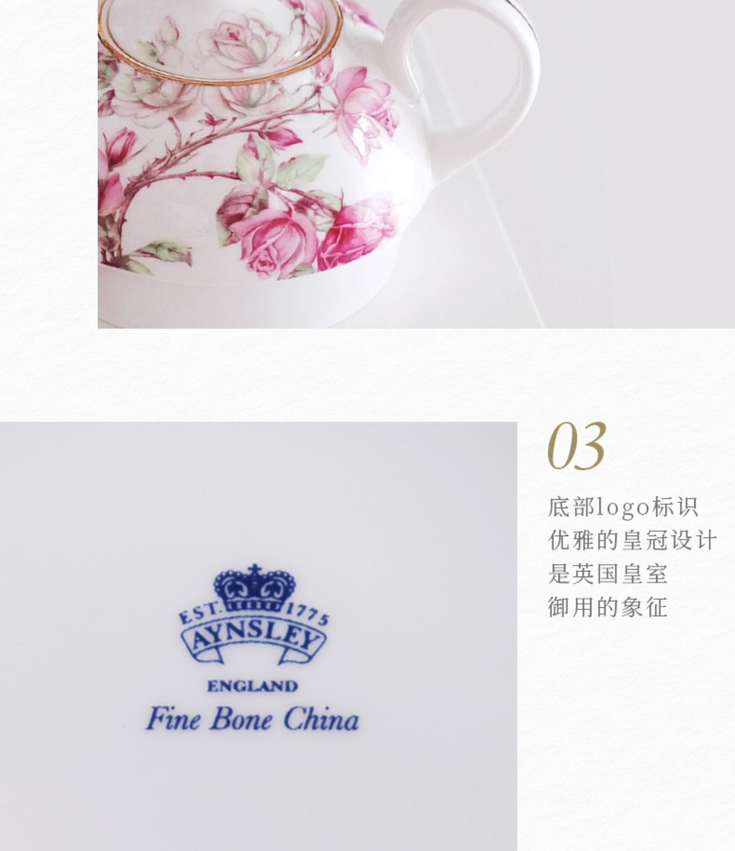 【清仓特惠6折】英国Aynsley安斯丽红蓝玫瑰骨瓷咖啡杯碟英式骨瓷子母壶杯碟家用
