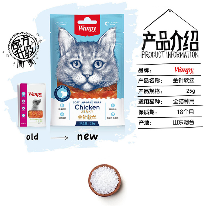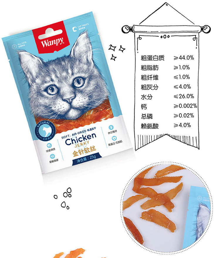 wanpy顽皮猫咪肉干幼猫磨牙零食美毛洁齿补钙肉干25g