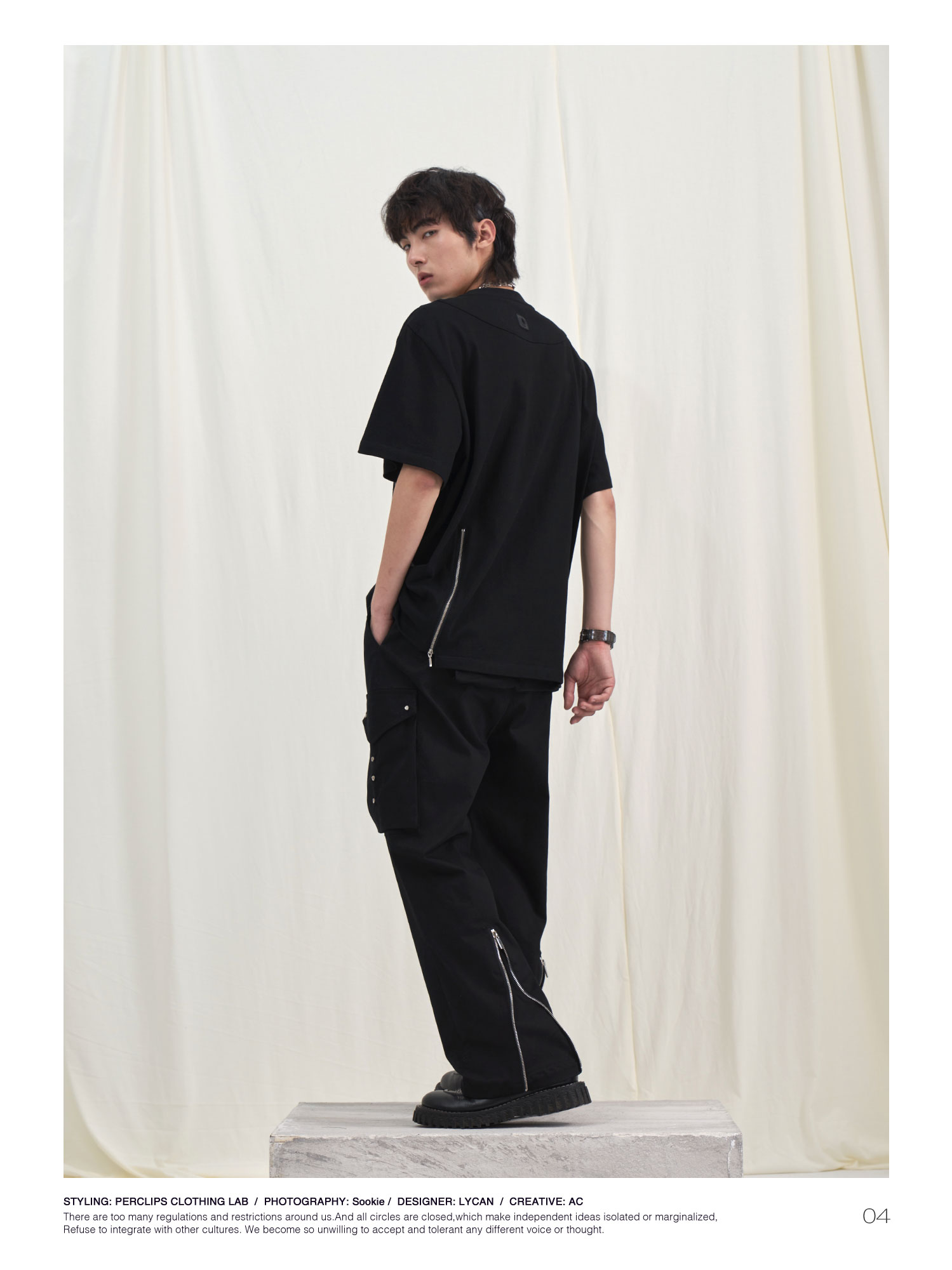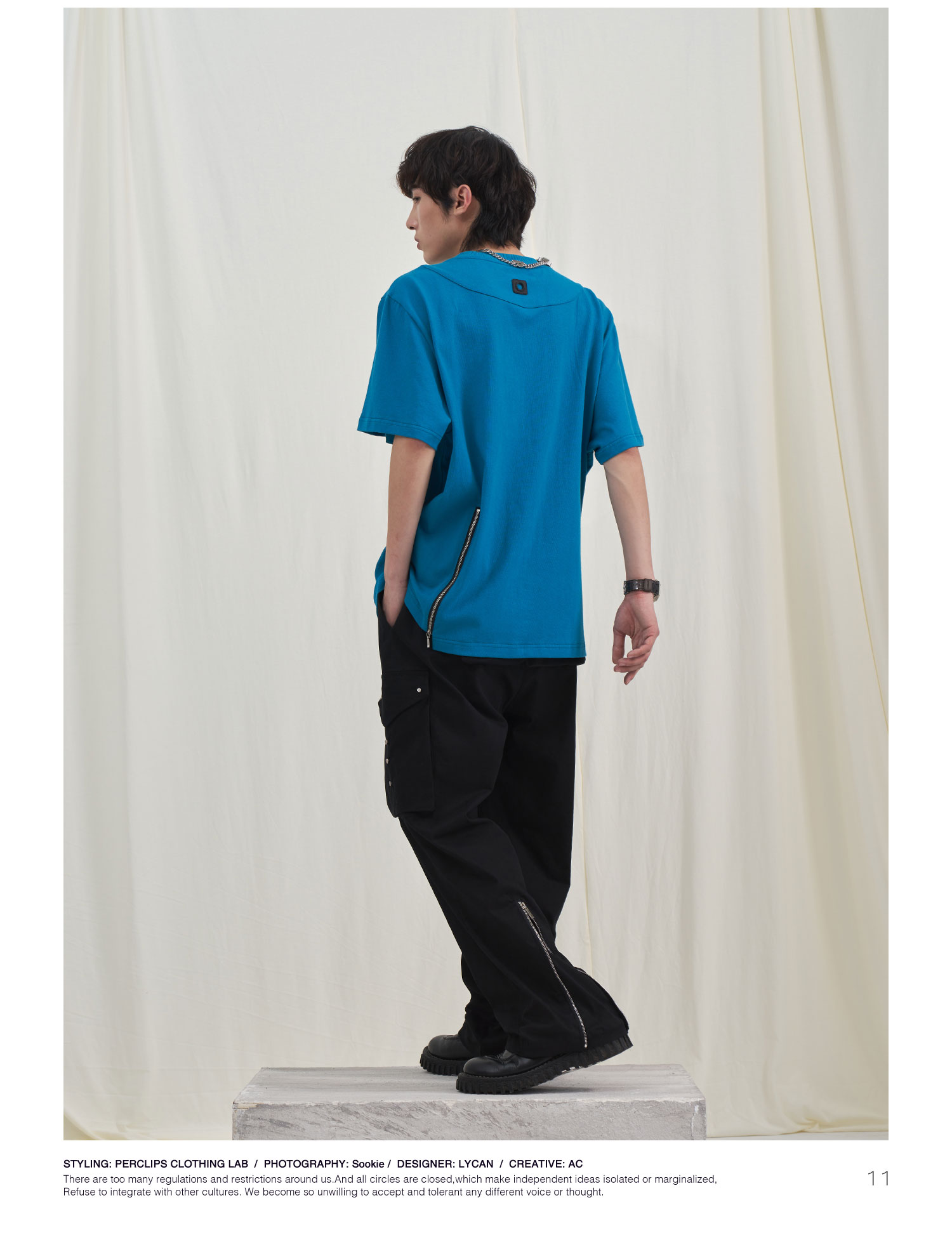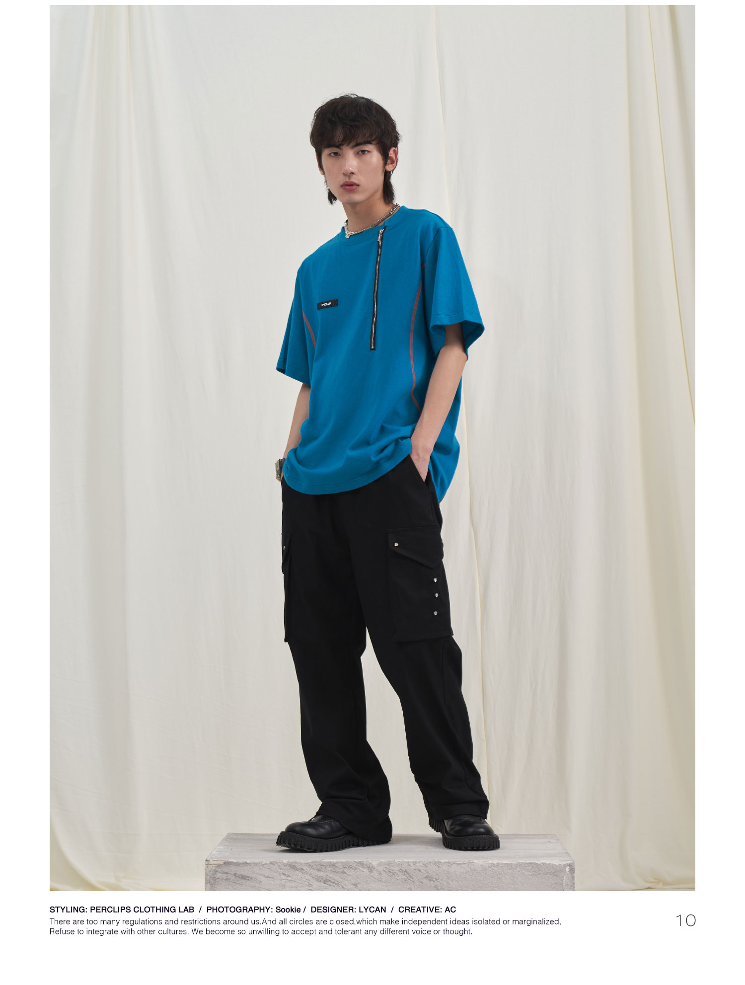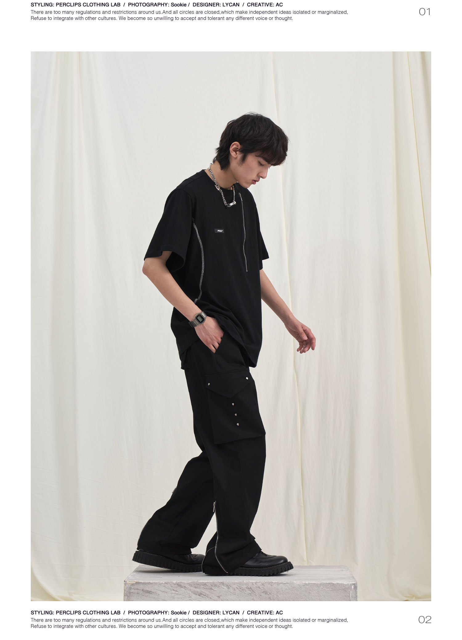 PCLP(PERCLIPS) 拉链坎线胶牌短袖夏季国潮牌潮流宽松圆领半袖t恤