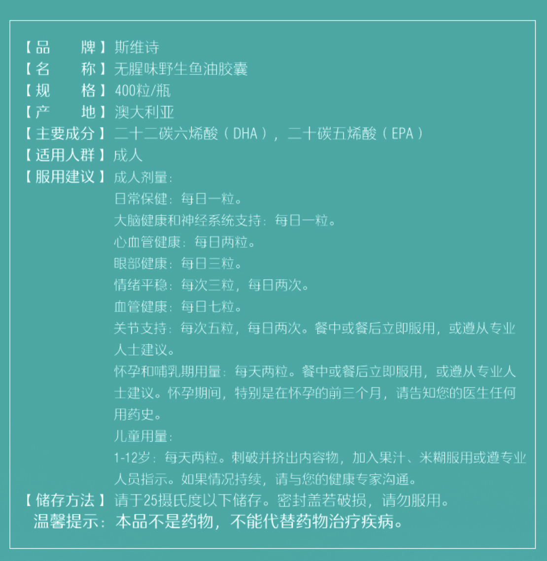 Swisse 斯维诗无腥鱼油 1000Mg 400 Cap【安琪全球购.保税仓直发】