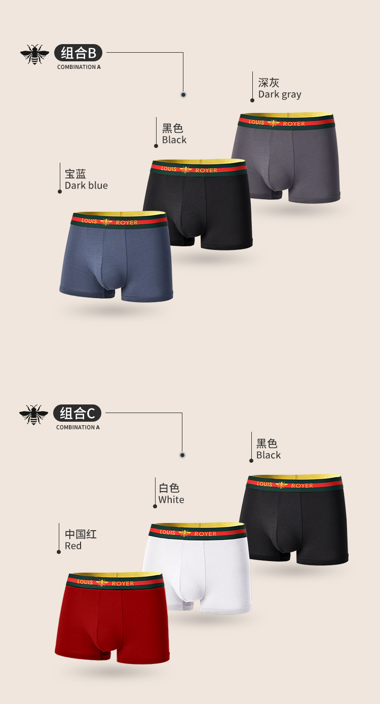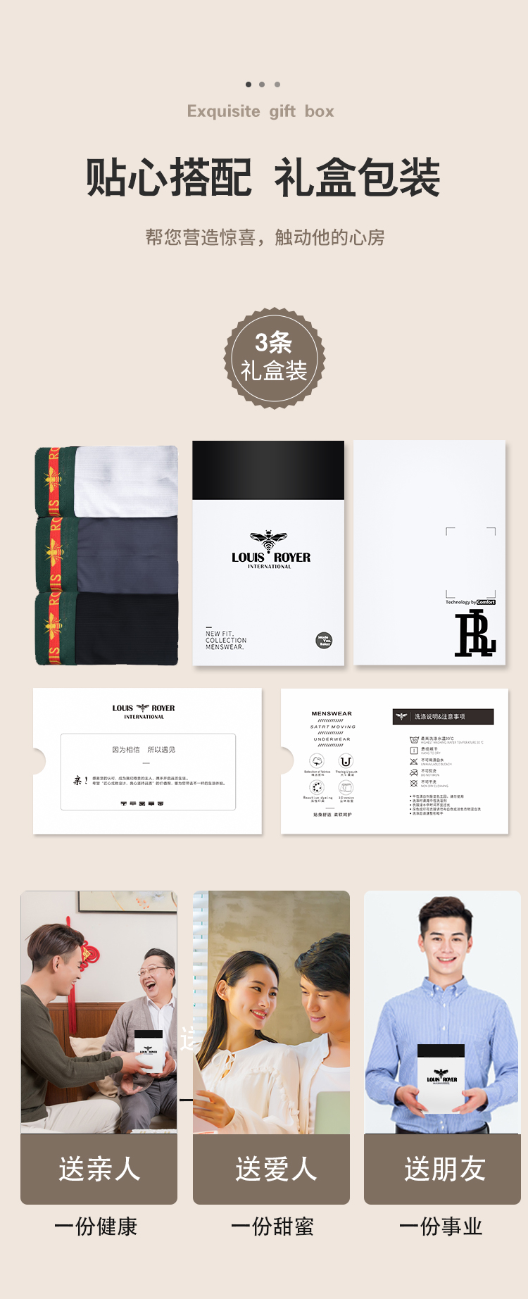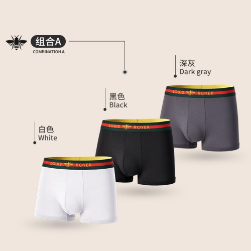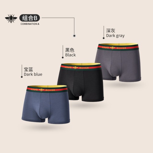 利蜂 LOUIS ROYER 男士内裤平角裤桑蚕丝底档3条组合装 NK02RX889