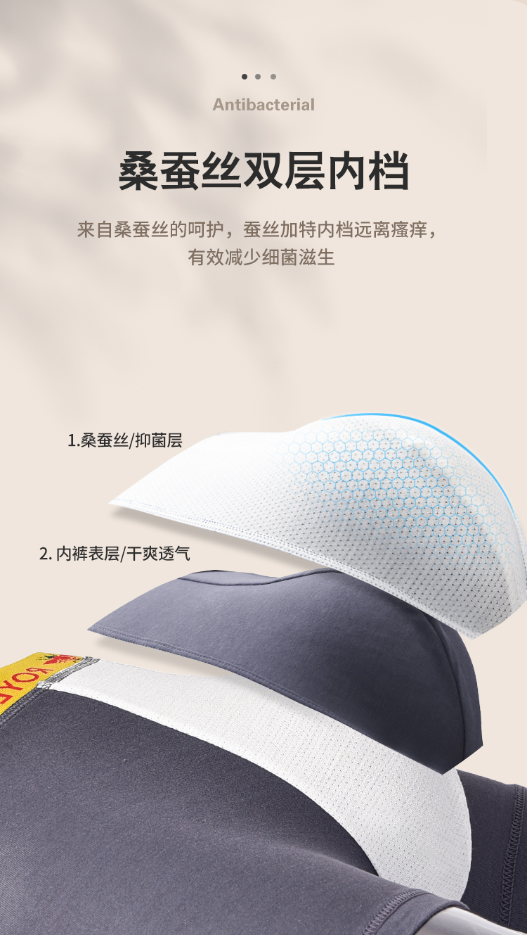【品名】男士内裤平角裤桑蚕丝底档男士内裤3条组合装NK02RX889