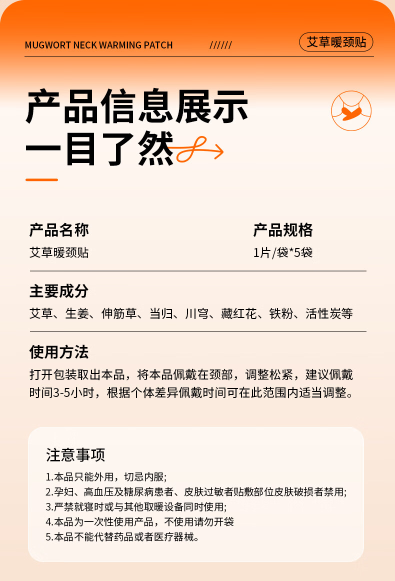 同仁堂艾草暖颈贴暖宝宝贴暖贴脖子肩颈热敷贴肩周关节炎发热艾灸贴5袋 100141347428