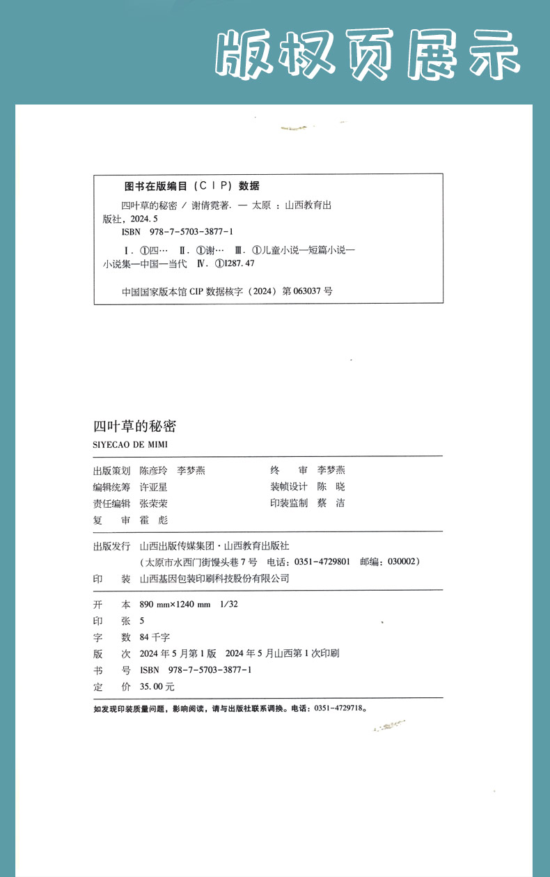 正版 致敬成长经典书系 麦田阳光 四叶草的秘密 谢倩霓著