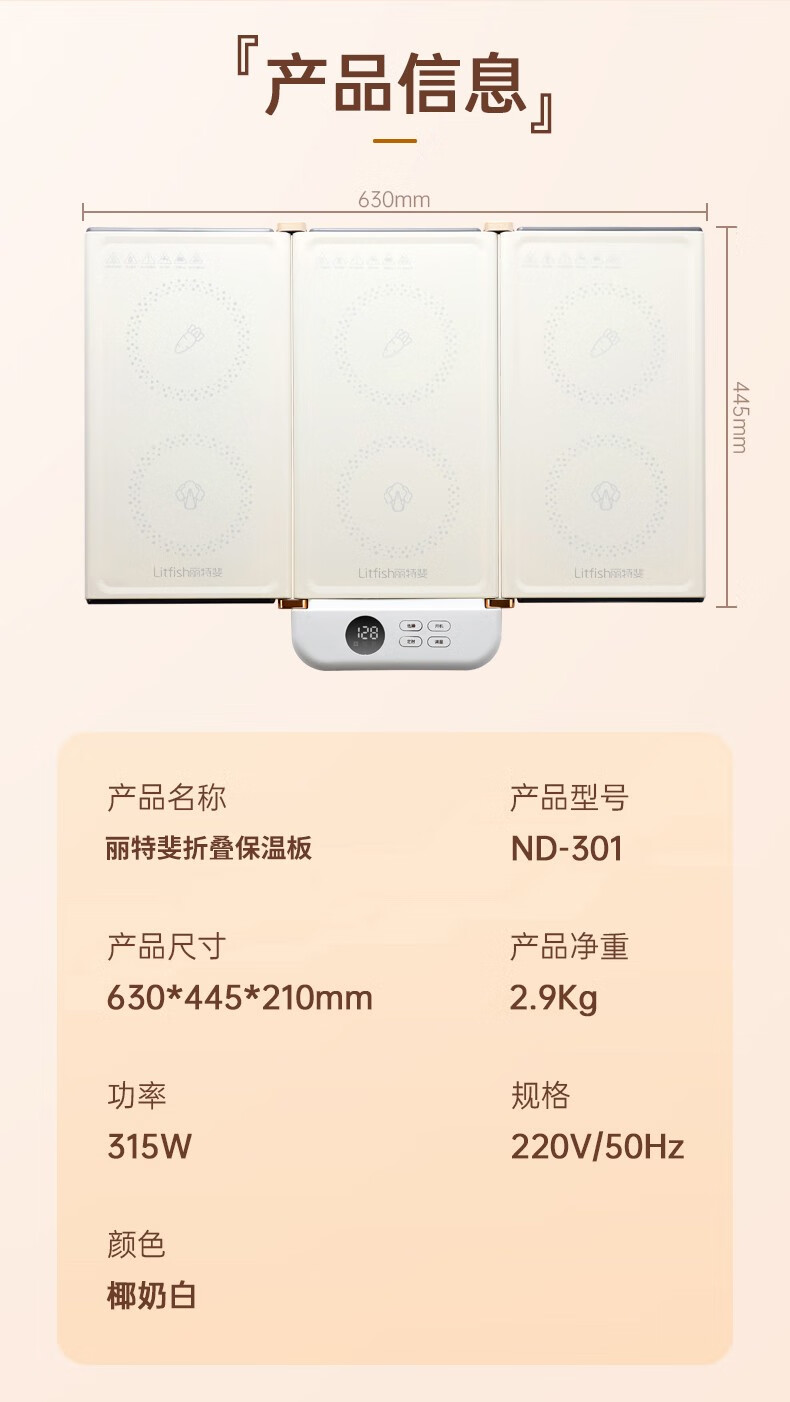 【小家电】丽特斐可折叠暖菜板保温板 ND-301 HF