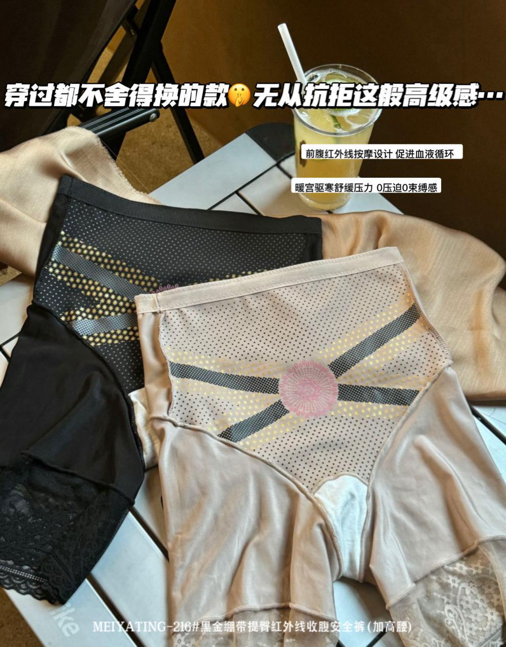 MEIYATING 216#黑金绷带提臀红外线收腹安全裤加高腰女士内裤舒适