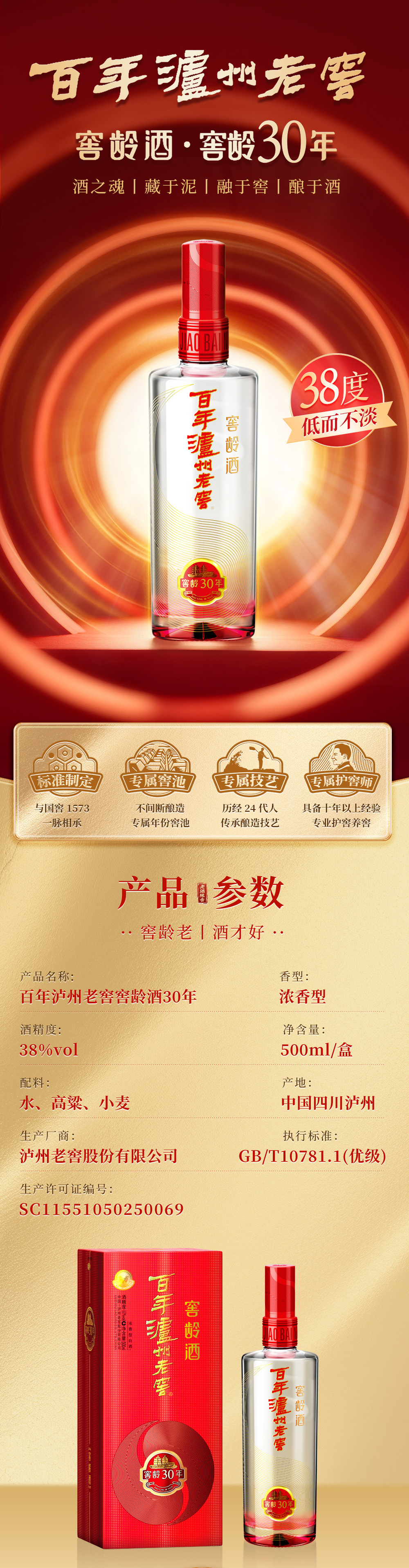 【扫码有好礼】38度百年泸州老窖窖龄酒30年 500ml*6 泸州老窖官方旗舰店