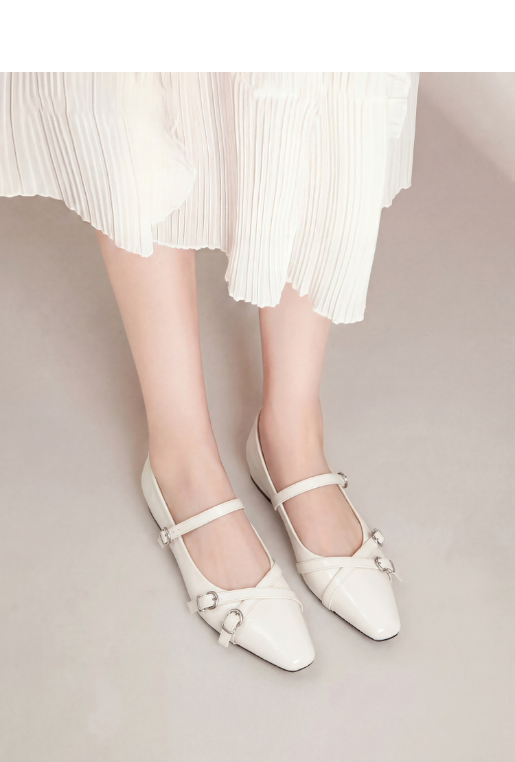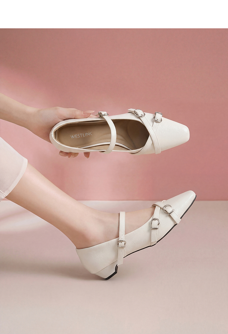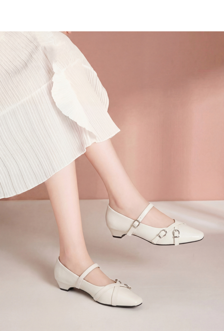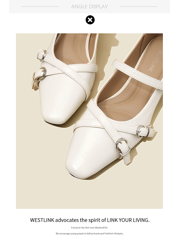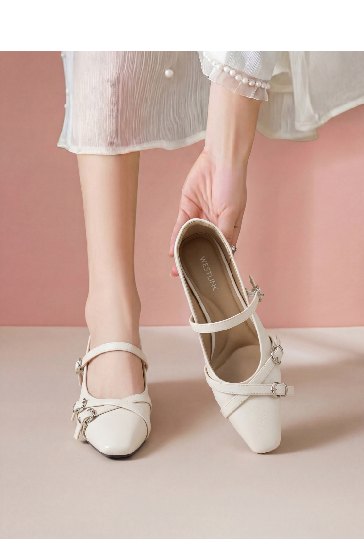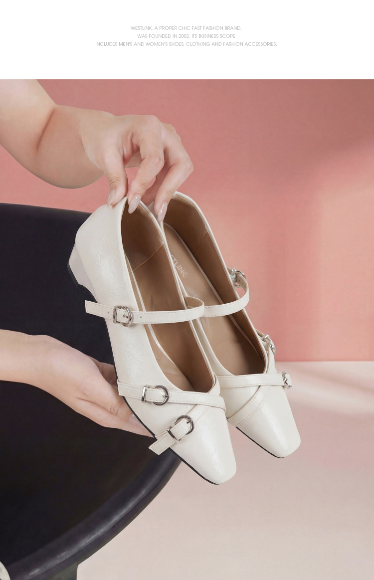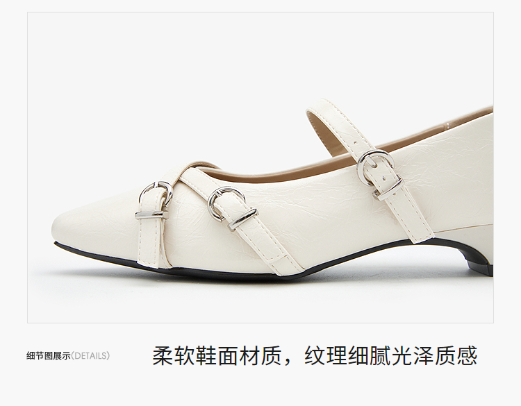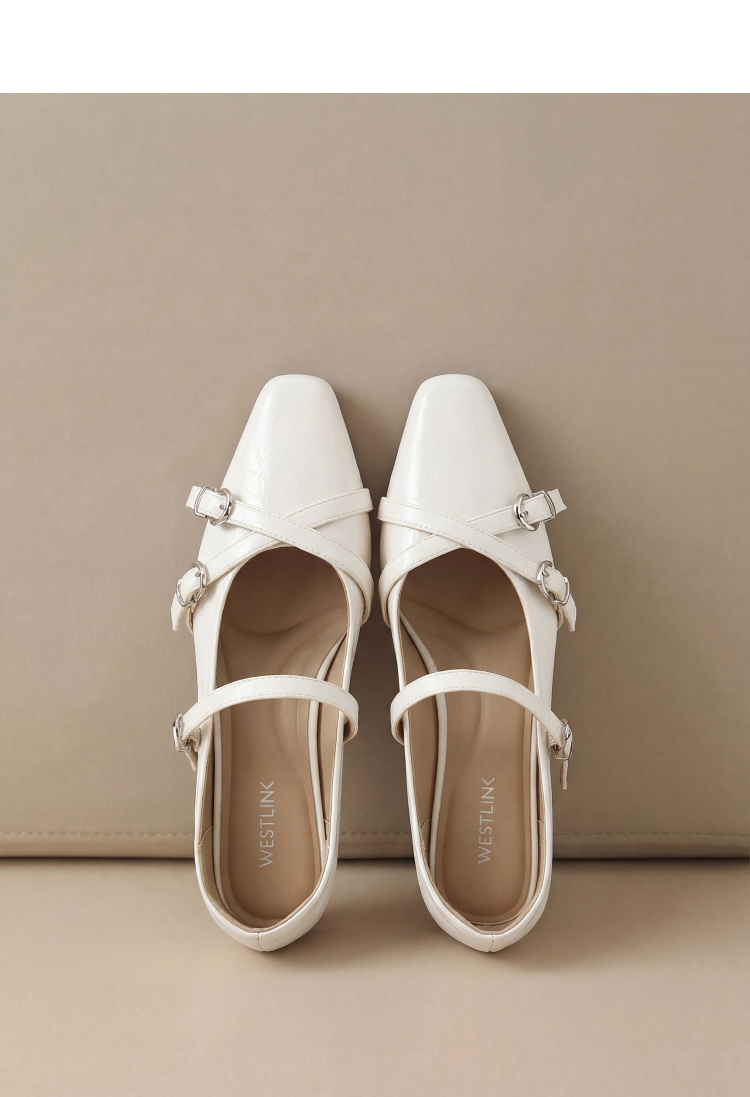 西遇厚底玛丽珍鞋女2026春季新款猫跟软面小皮鞋方头交叉带单鞋子V0566333