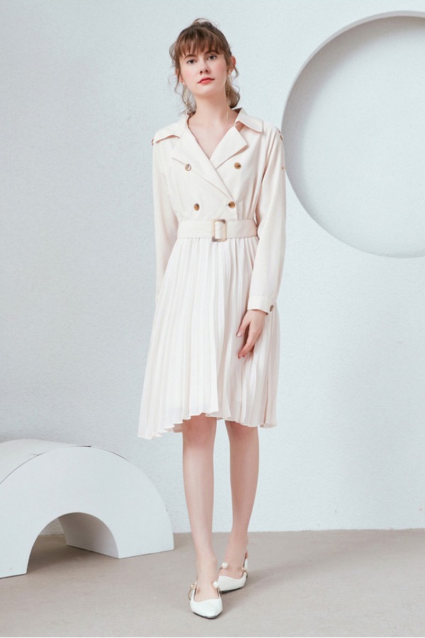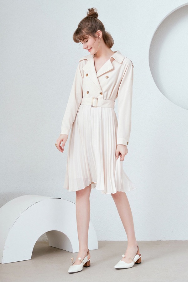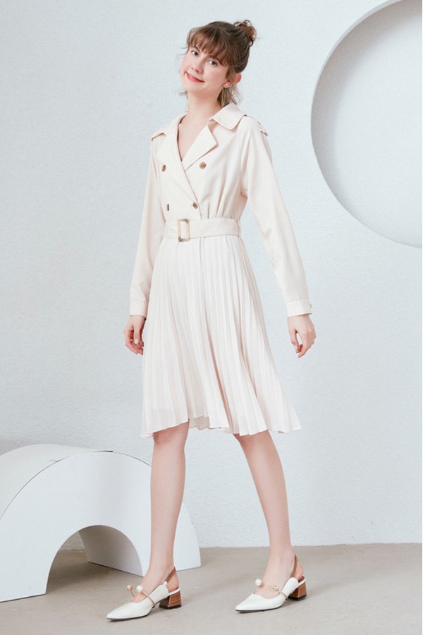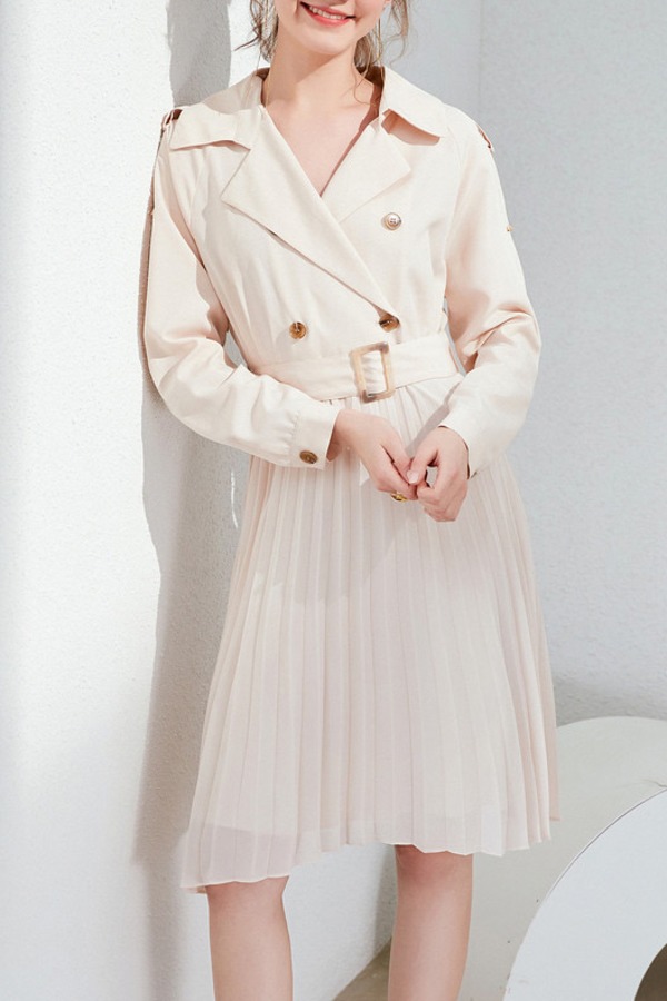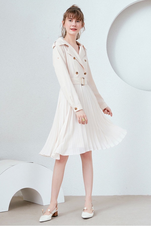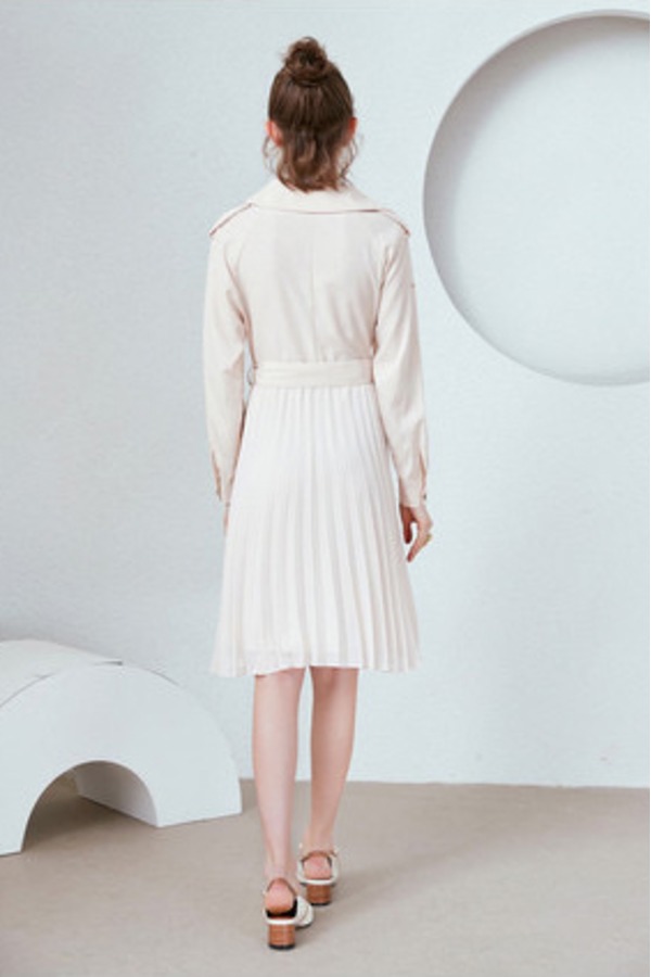 Y.SING衣香丽影 米色风衣式百褶连衣裙 9651