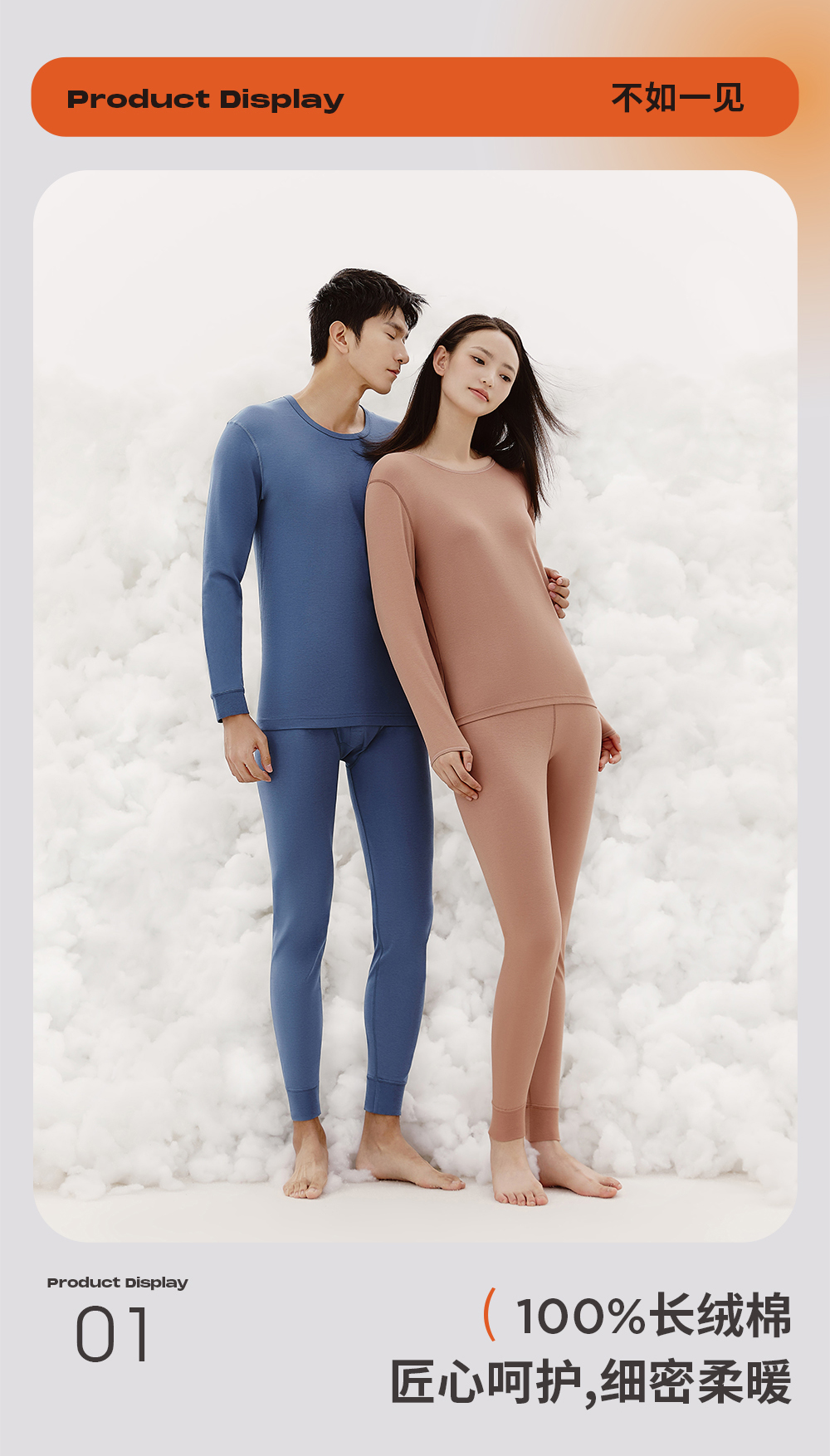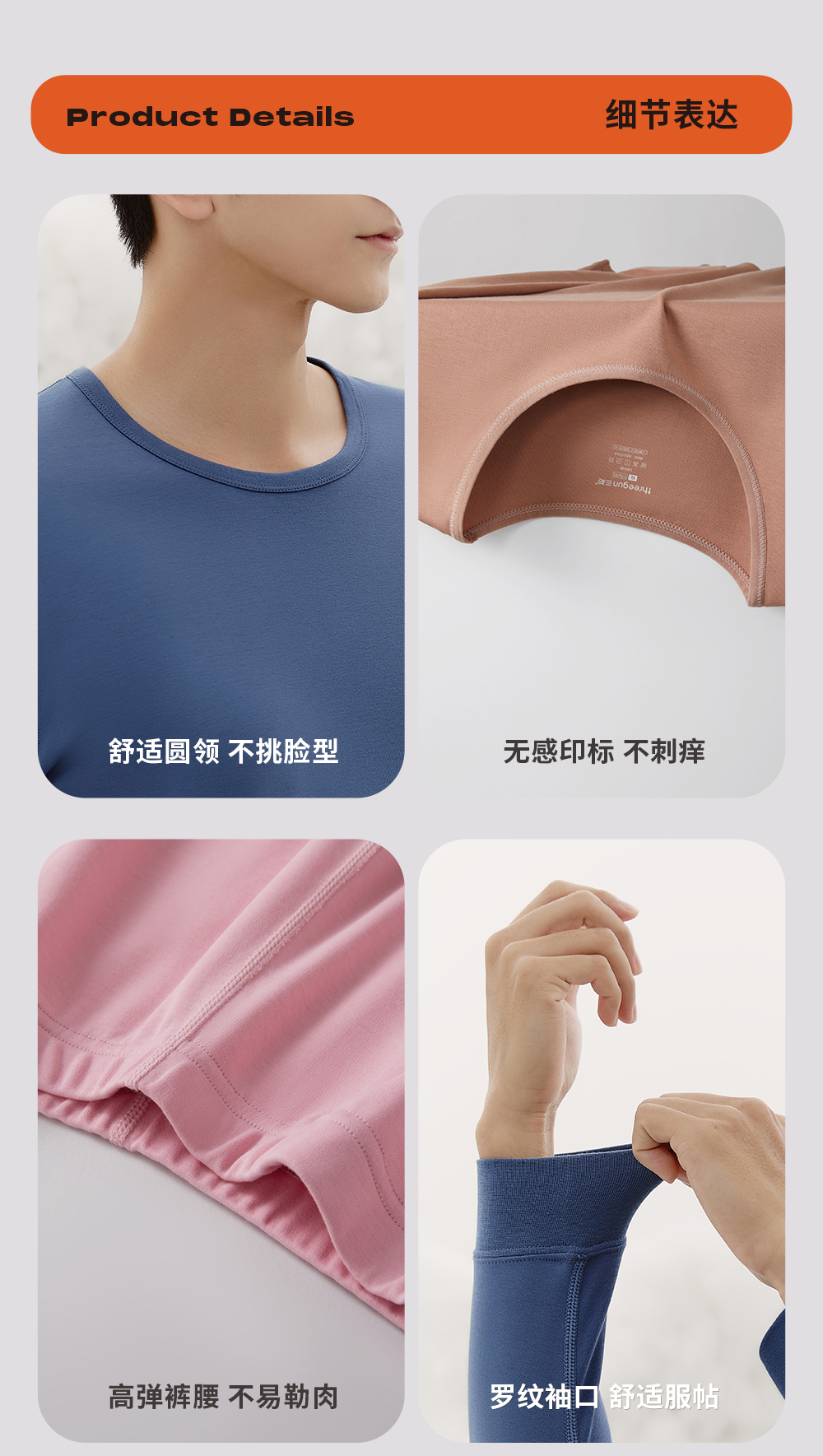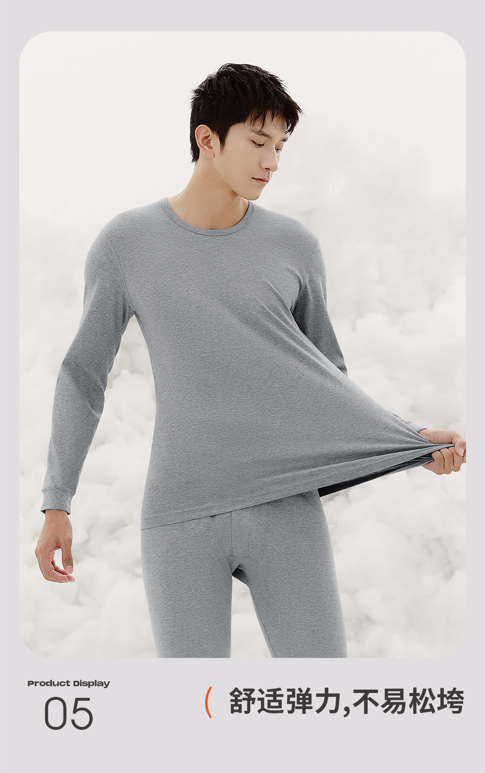 Threegun三枪 【高支新疆长绒棉】圆领男士保暖内衣套装-24291D021