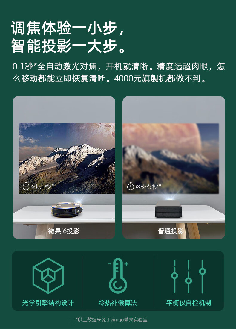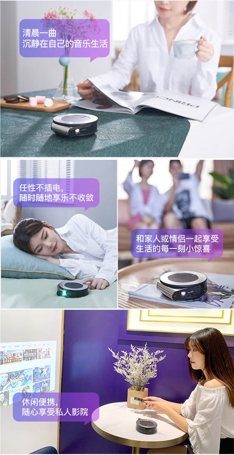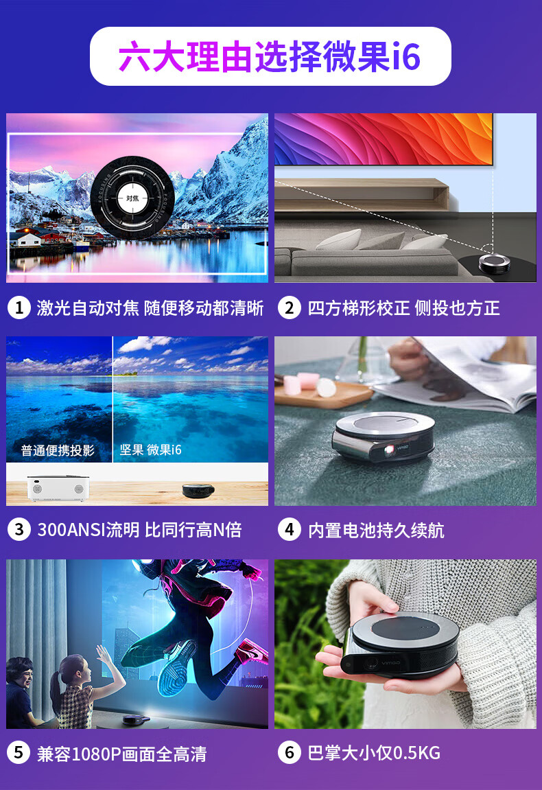 【品牌发货,不支持无理由退换】微果(VIMGO) I6 家用高清家庭影院卧室投影机投影仪家用 自动聚焦持久续航小型便携 I6