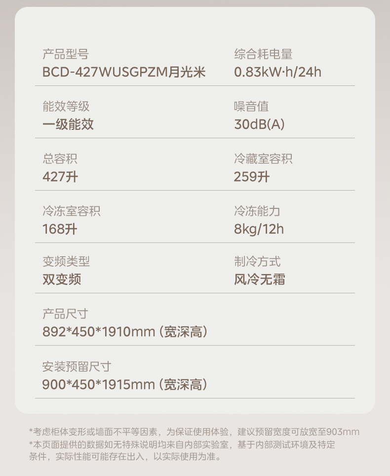 美的 冰箱 BCD-427WUSGPZM 月光米