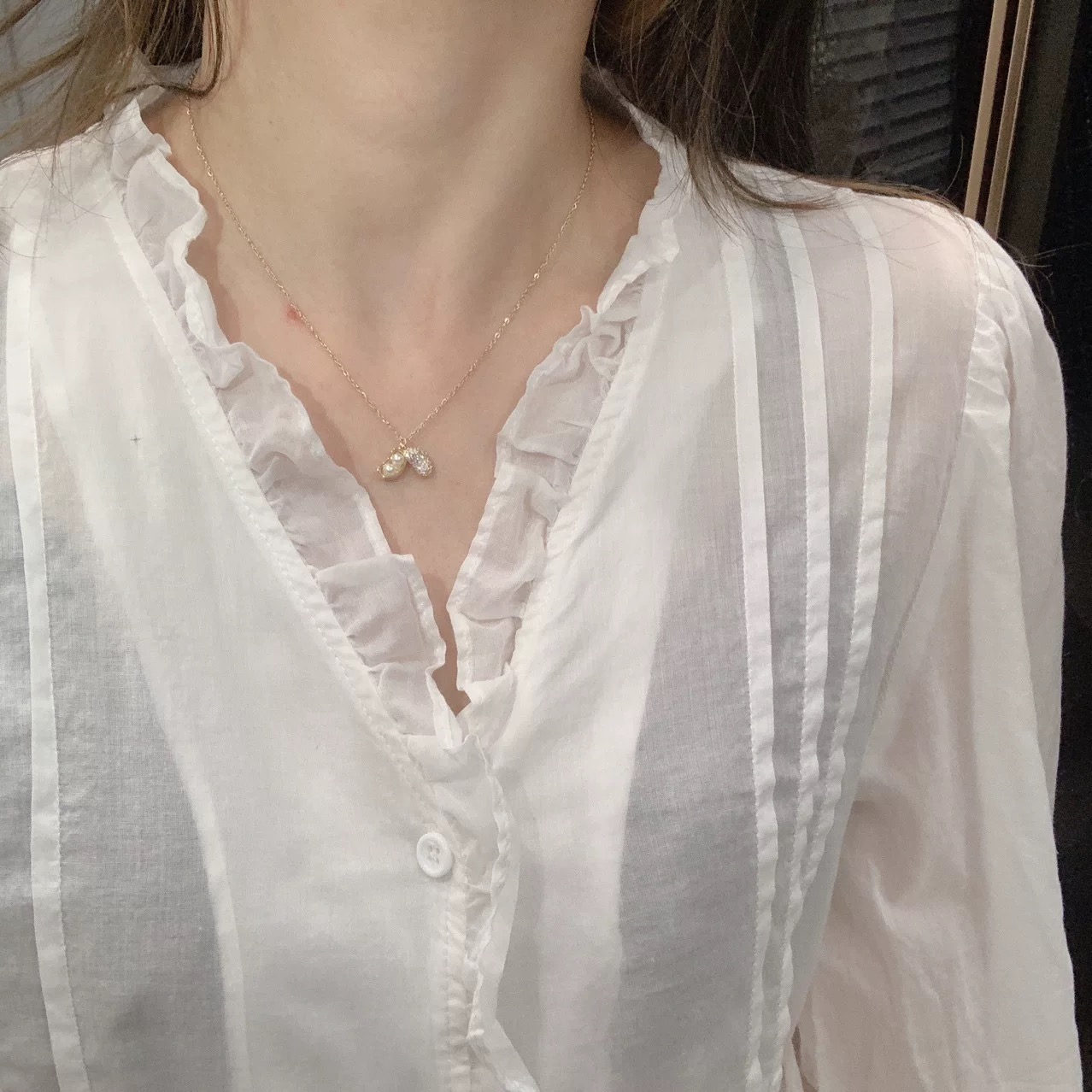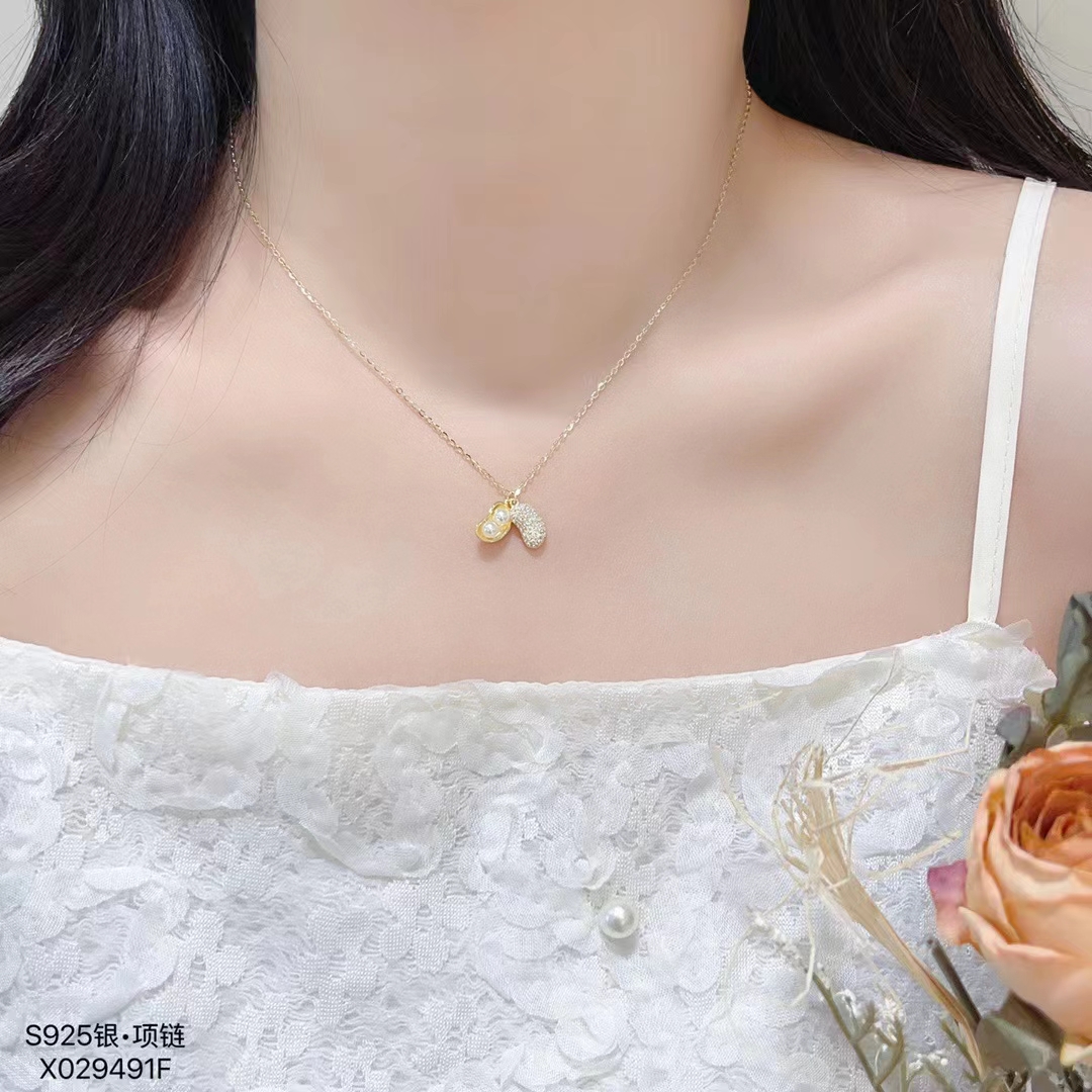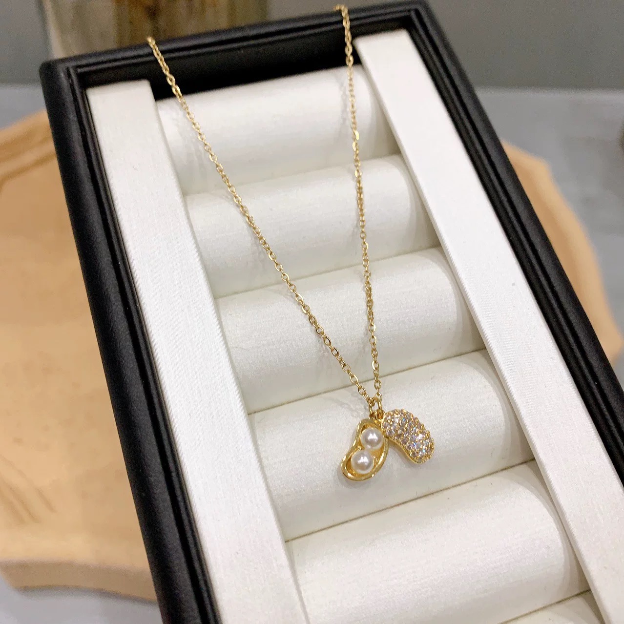 Oflye潮流饰品 好事发生925银项链高级感新中式花生锆石珍珠小众设计新款项链