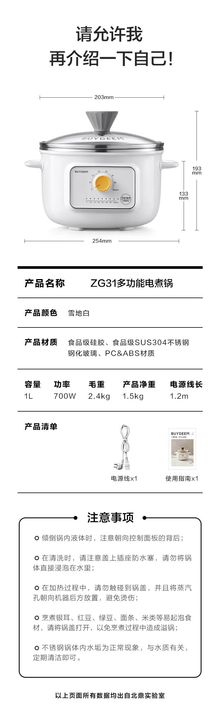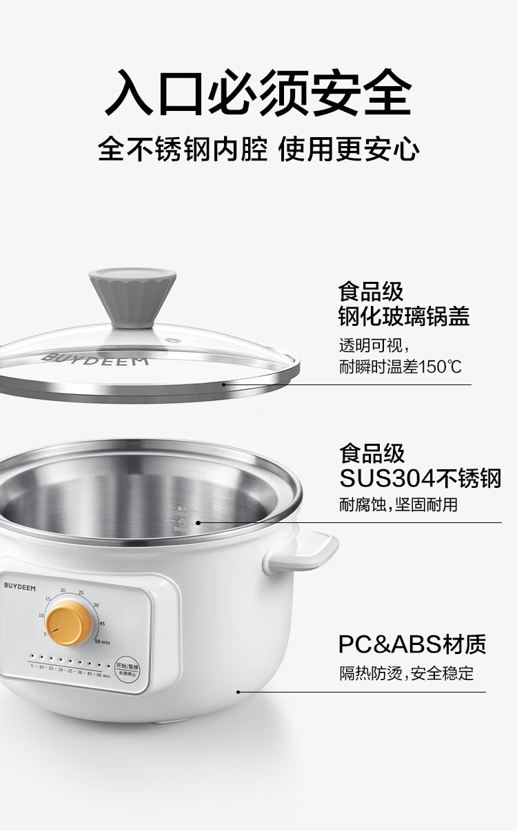 【专柜-北鼎】北鼎ZG31/电煮锅多功能锅电炖锅 雪地白1L