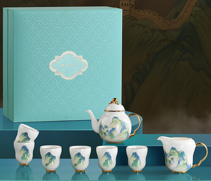 茶道套装办公室摆件功夫茶具琉璃玉珐琅彩工艺品 事事如意茶具 送礼佳品 茶具 茶杯 茶壶