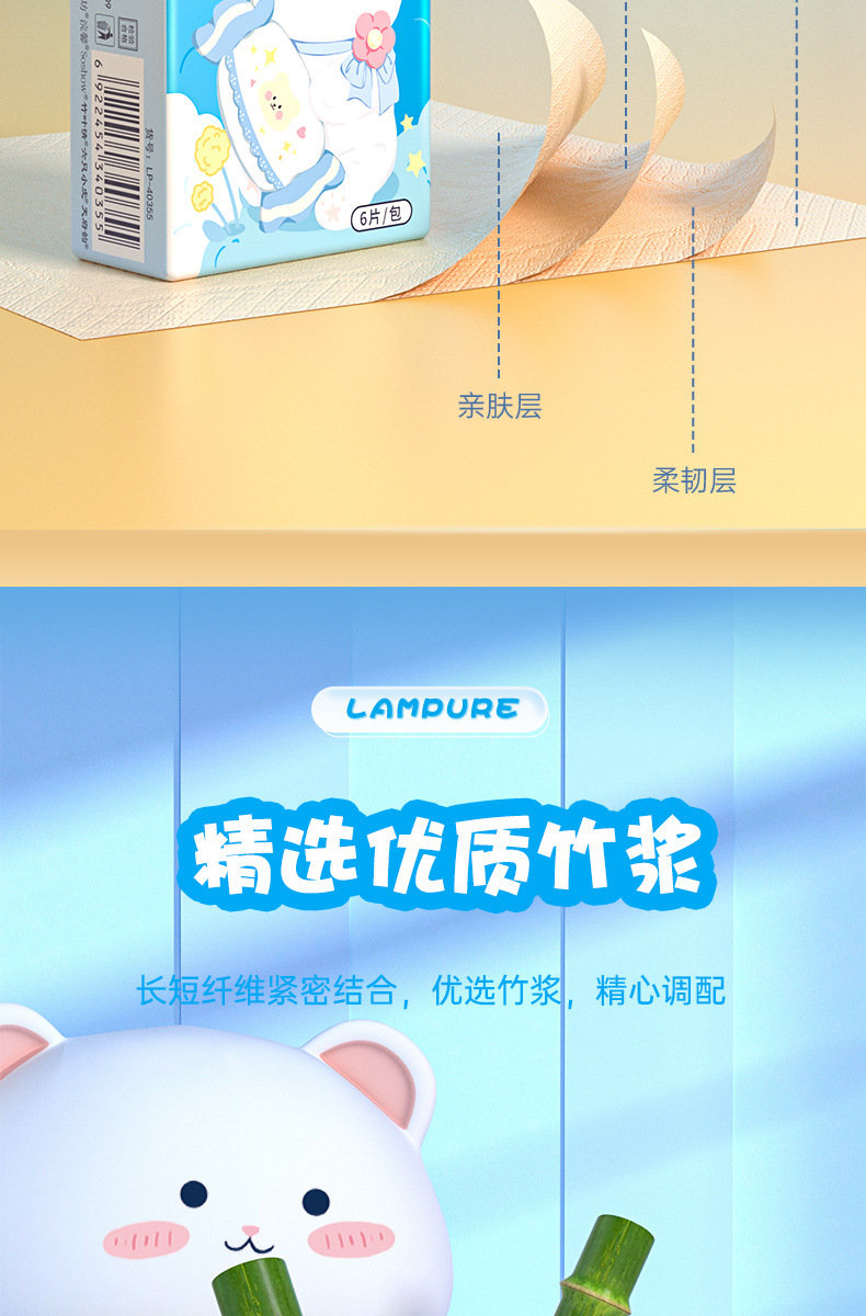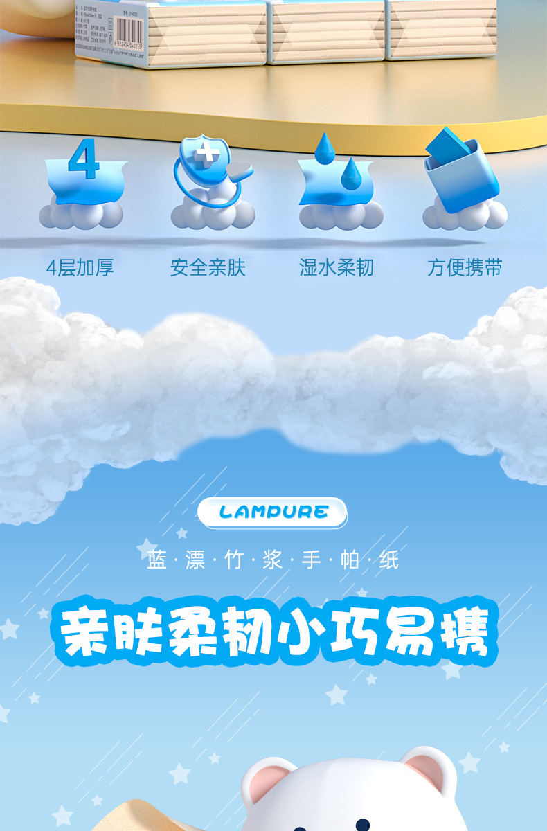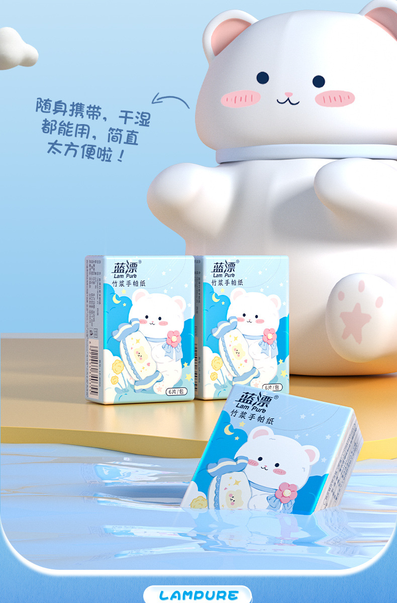 「19.9到手60包」蓝漂竹浆本色迷你手帕纸 便捷式小包居家日用纸巾