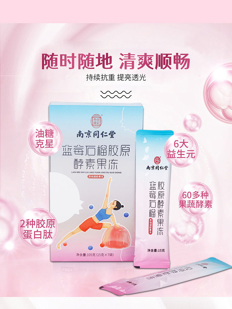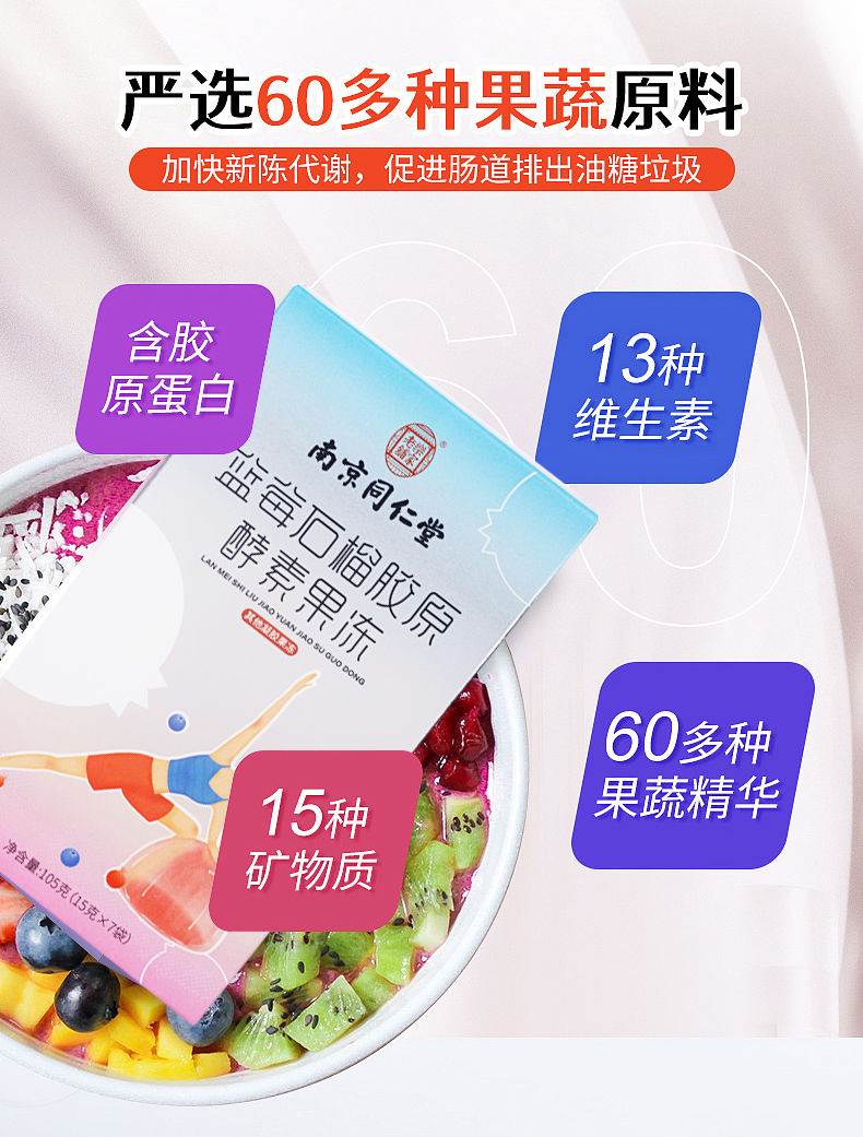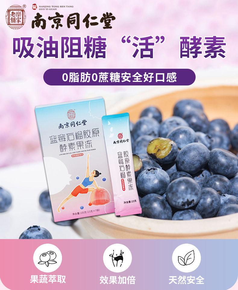 【超值优惠装 买2送1 买3送2!!!】南京同仁堂 蓝莓石榴味胶原 酵素果冻0脂肪0卡0蔗糖蓝莓味石榴味水果味减孝素果冻-肥代餐零食