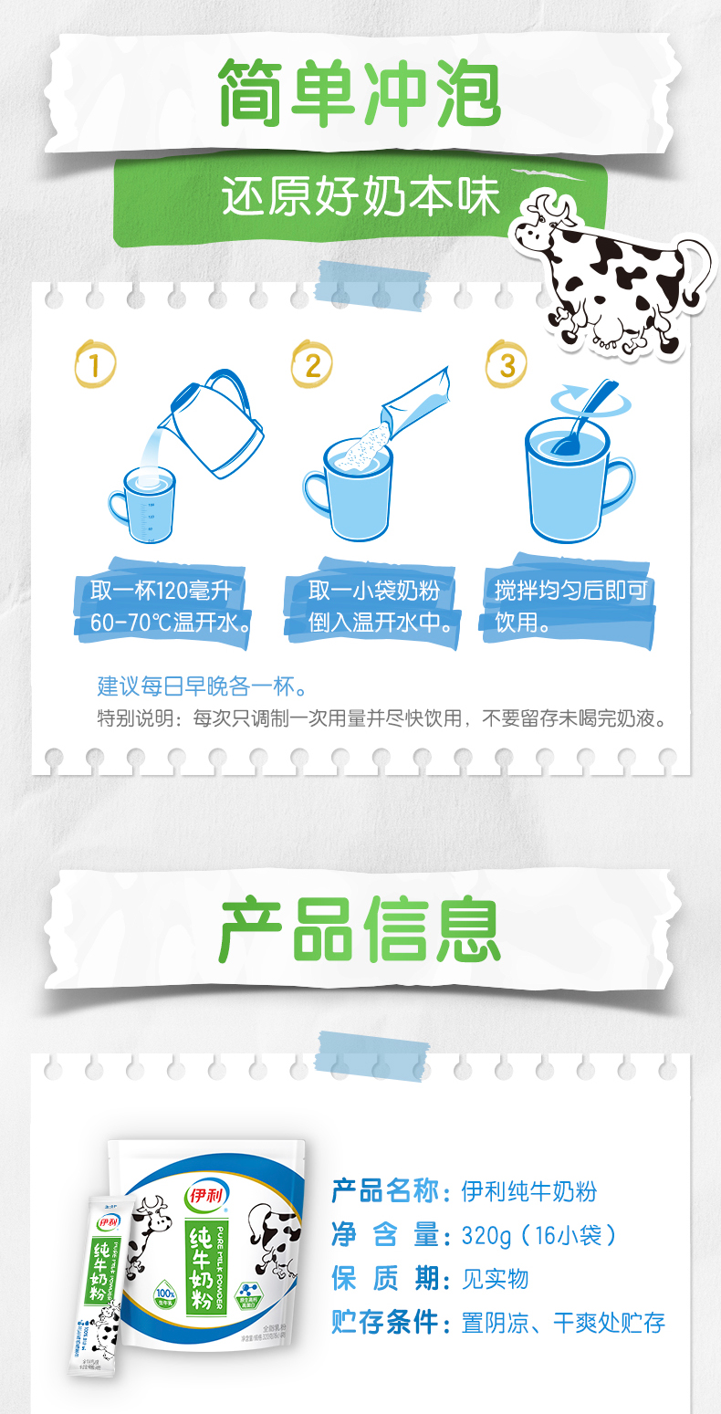 【冬日盛惠】伊利纯牛奶粉320g/袋 全脂乳粉 100%生牛乳(两种包装随机发货)