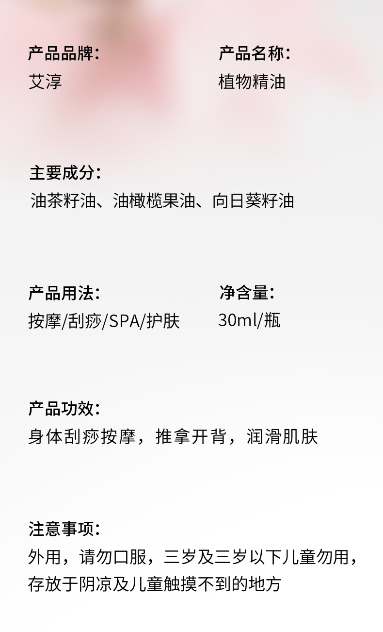 草绿香30ml玫瑰按摩精油面部全身通经络免洗护肤温和美容院专用 商品图3