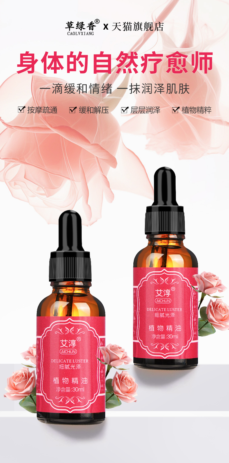 草绿香30ml玫瑰按摩精油面部全身通经络免洗护肤温和美容院专用 商品图2