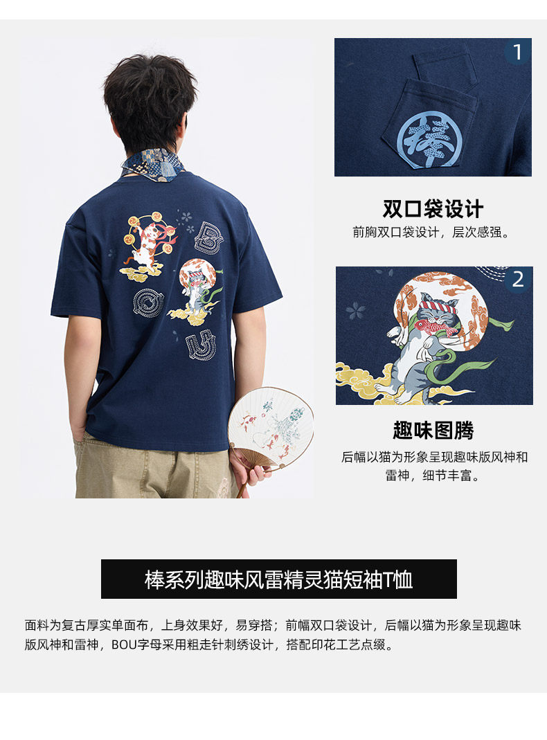 ONIARAI/鬼洗26春夏新品棒系列趣味风雷精灵猫短袖T男 N840296