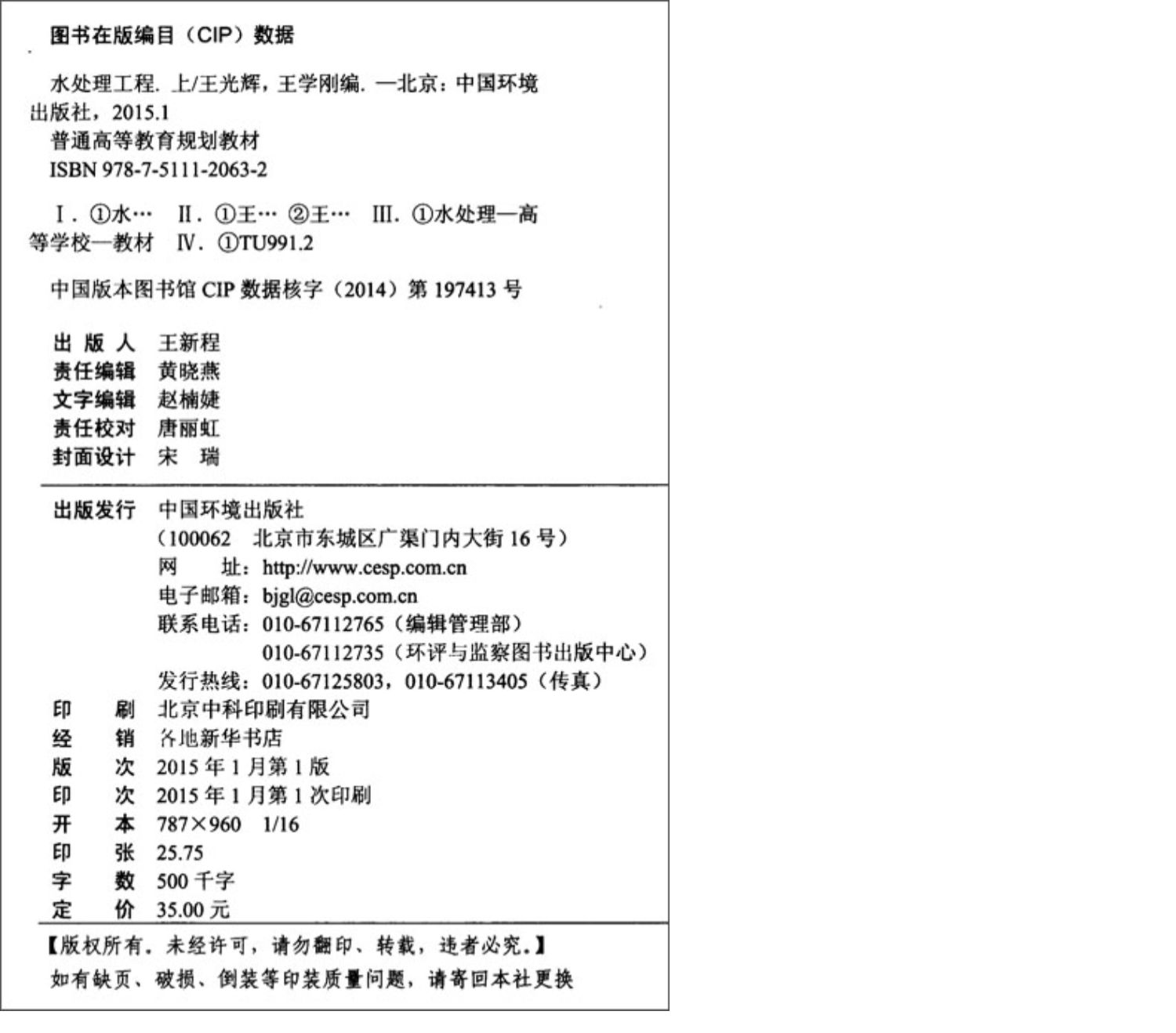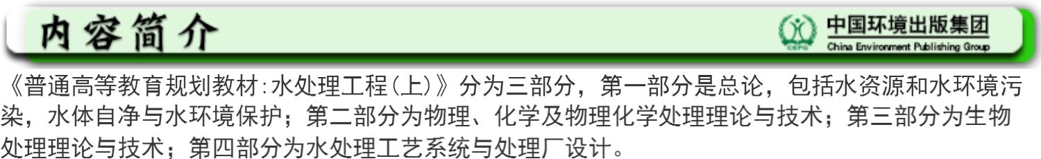 水处理工程上册 普通高等教育规划教材 王光辉 王学刚 环境保护 9787511120632