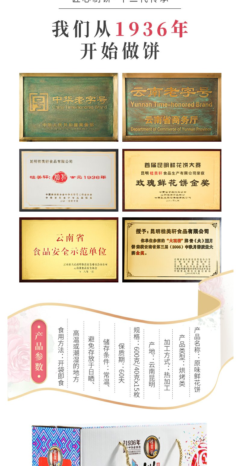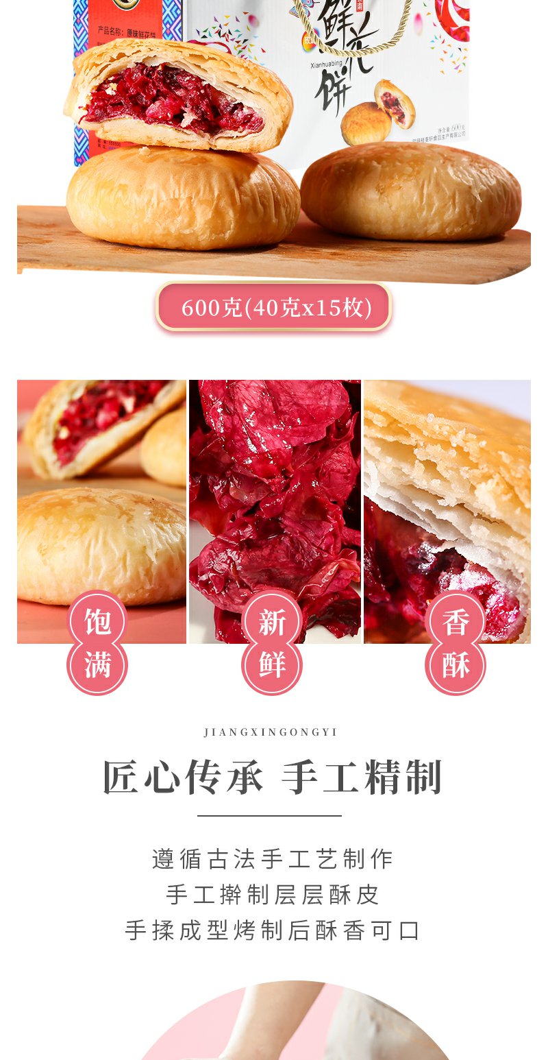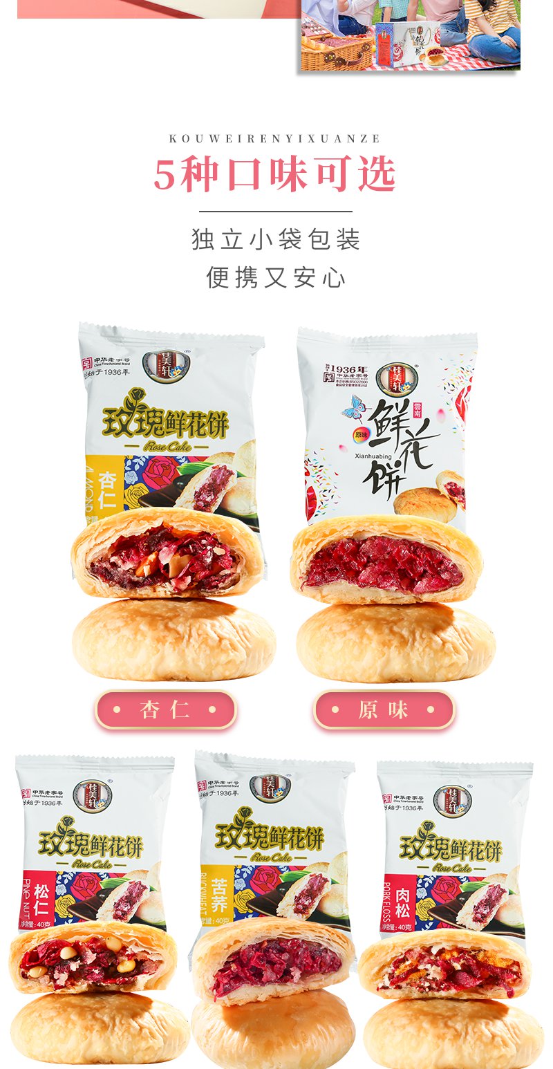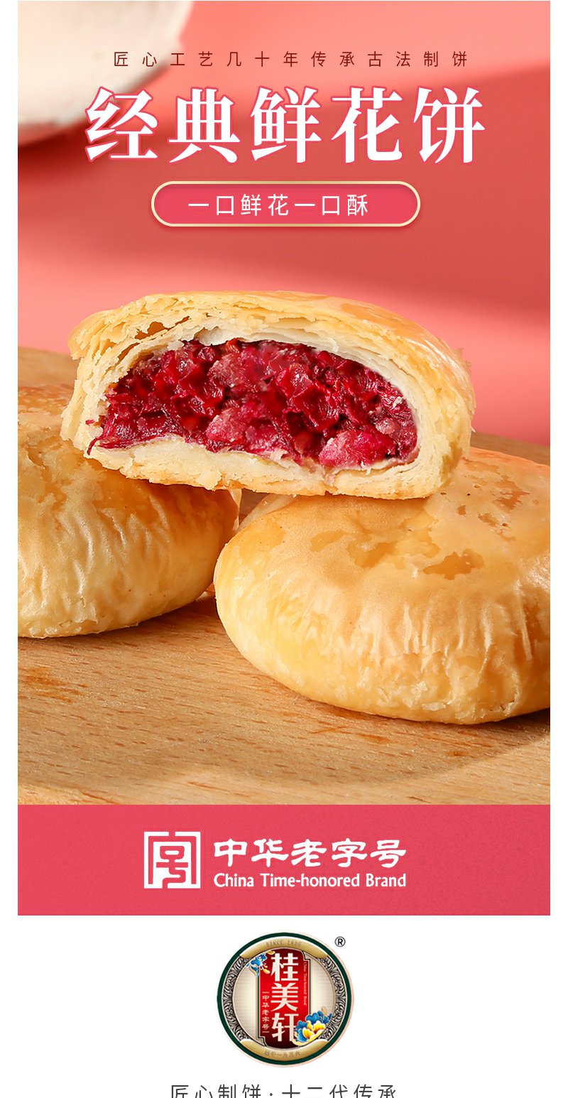 桂美轩 经典玫瑰鲜花饼600g礼盒装 云南特产中华老字号 休闲零食
