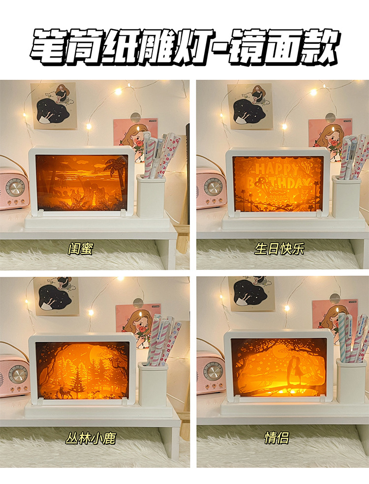 创意3D笔筒纸雕灯led台灯摆件灯公司氛围生日礼物