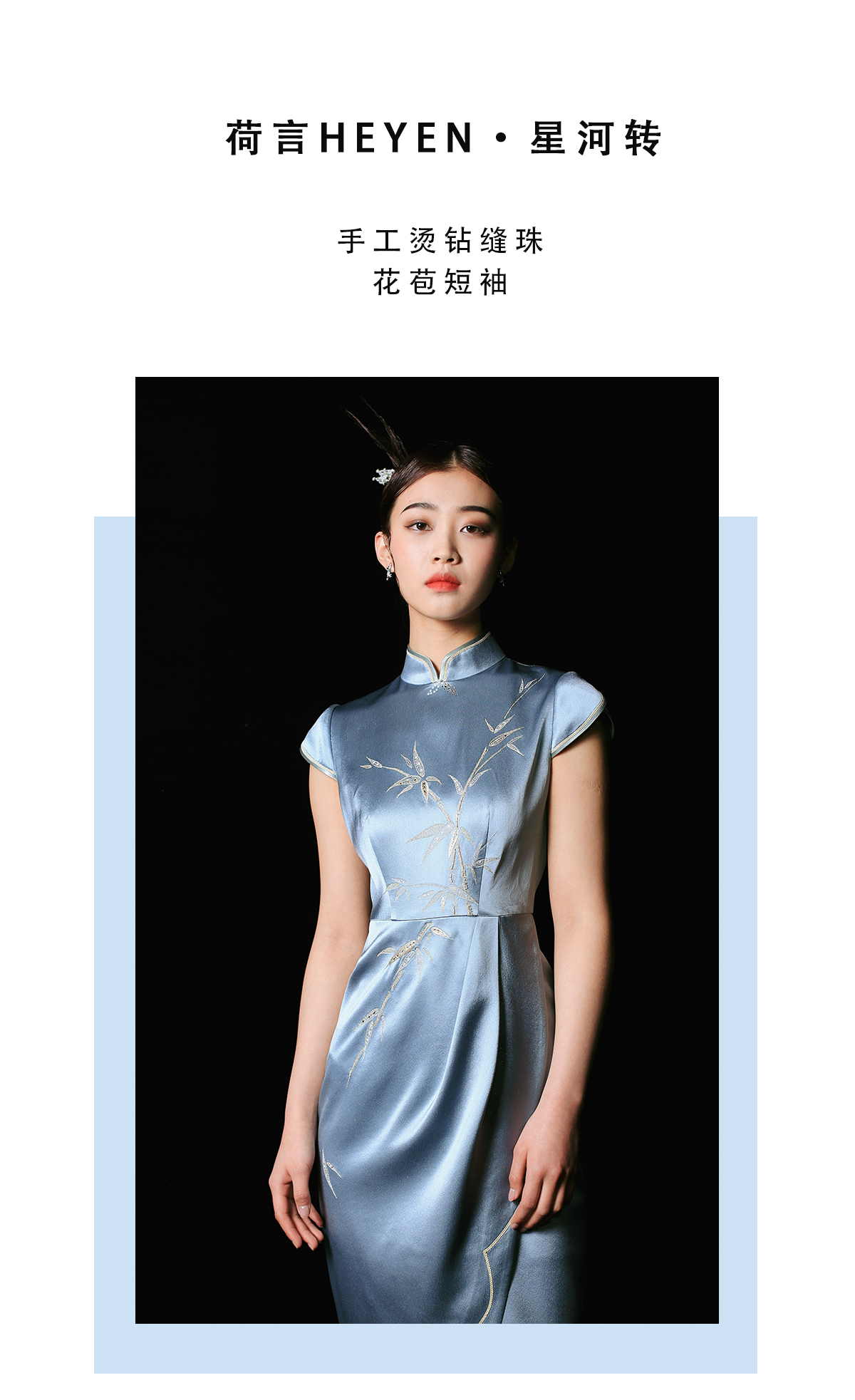荷言HEYEN星河转花苞短袖手工烫钻旗袍高级定制时装周大秀 商品图3
