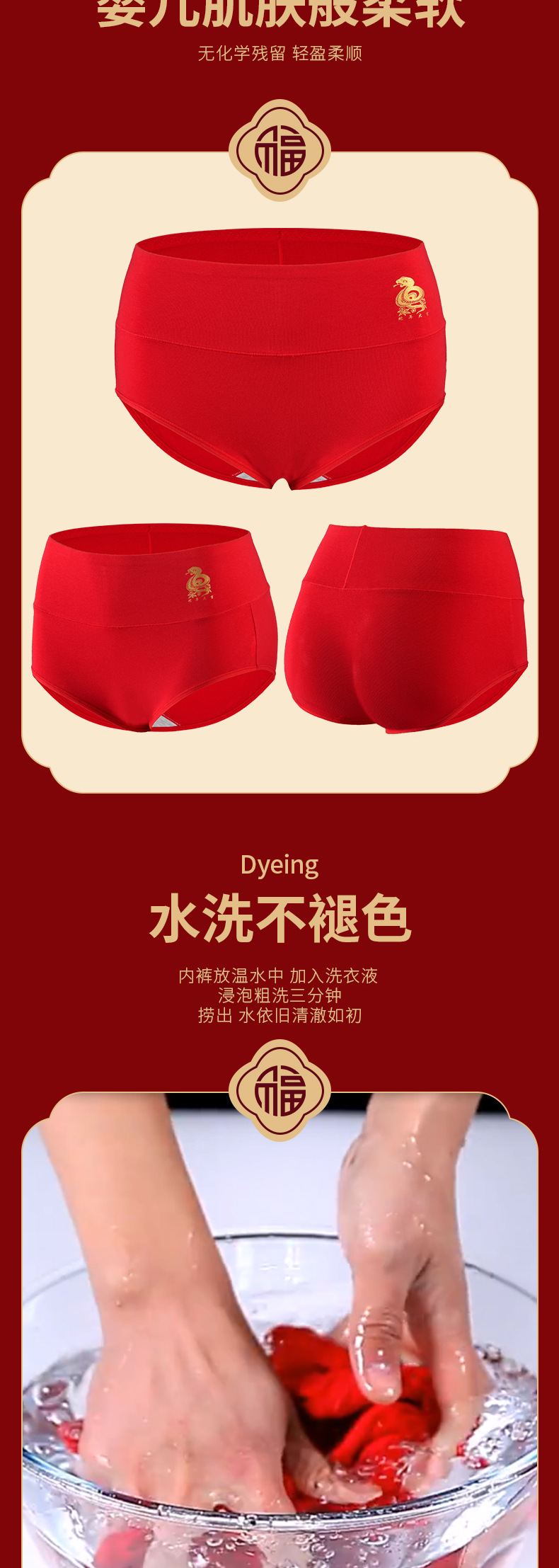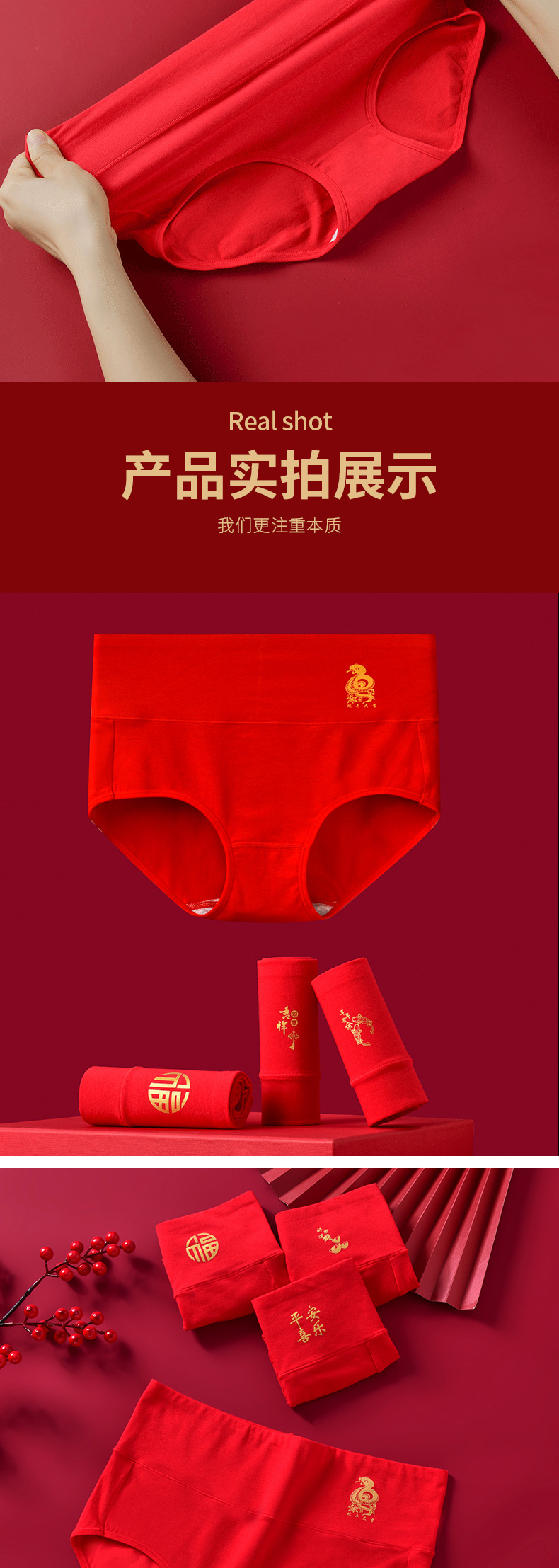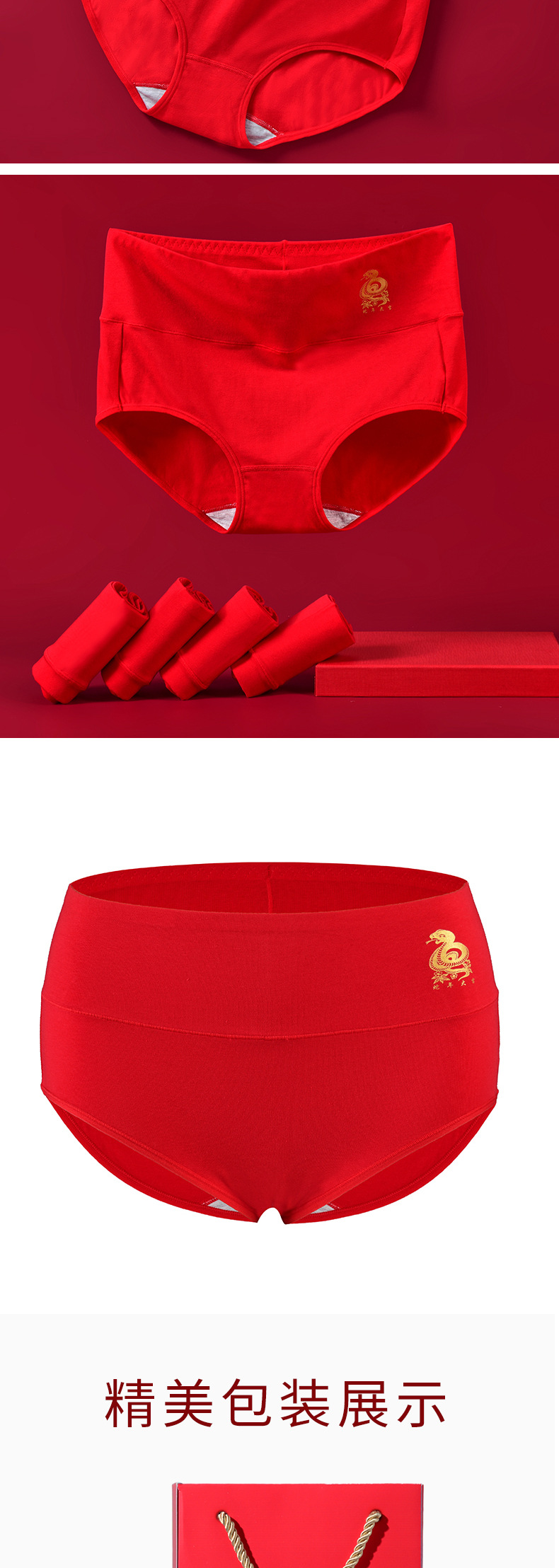本命年马年红色内裤女士结婚三角裤无痕秋冬女高腰纯棉红内裤透气