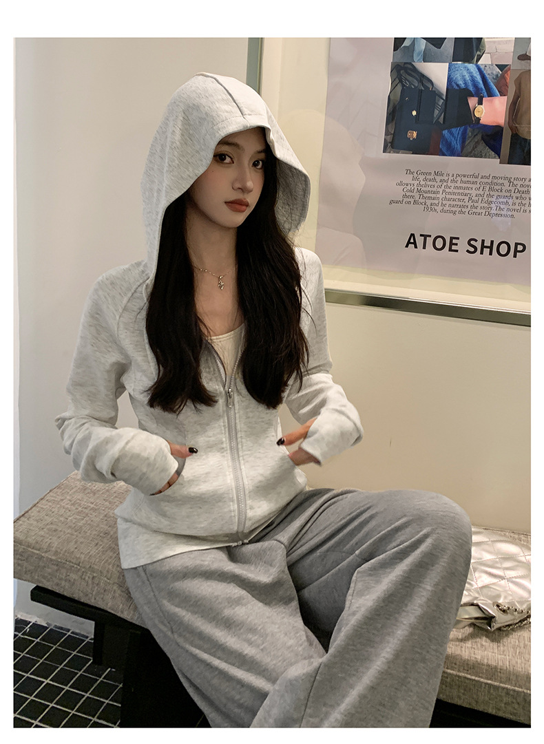 灰色连帽卫衣女春秋2025新款韩版修身开衫长袖外套慵懒风早秋上衣 商品图2