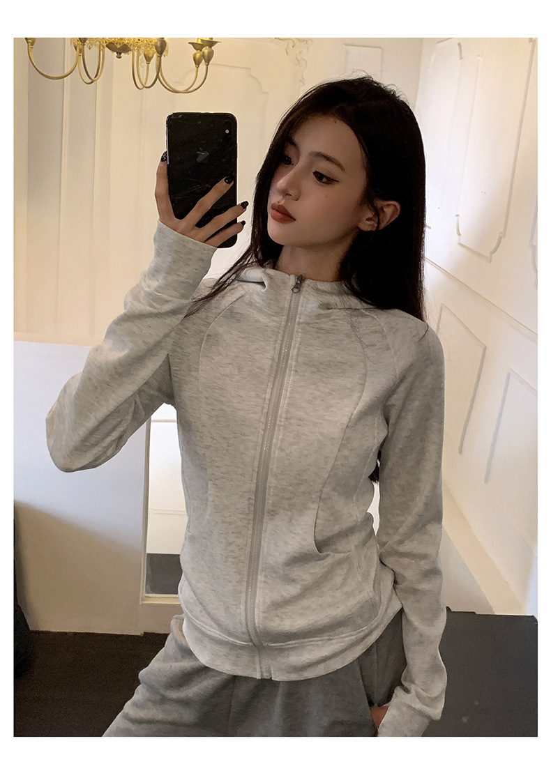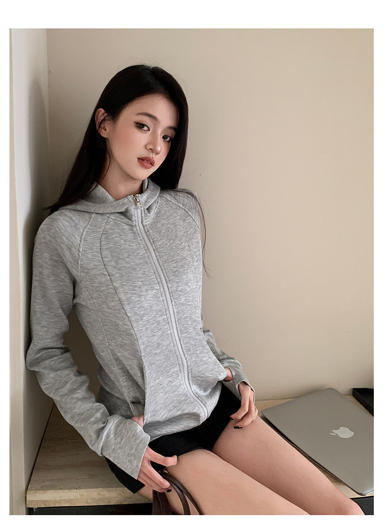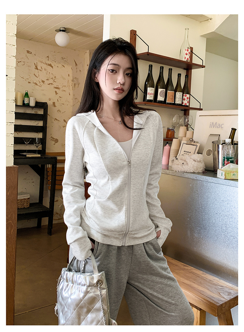 灰色连帽卫衣女春秋2025新款韩版修身开衫长袖外套慵懒风早秋上衣 商品图6