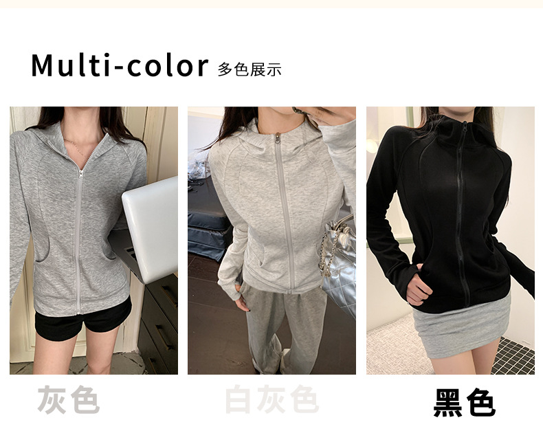 灰色连帽卫衣女春秋2025新款韩版修身开衫长袖外套慵懒风早秋上衣 商品图3