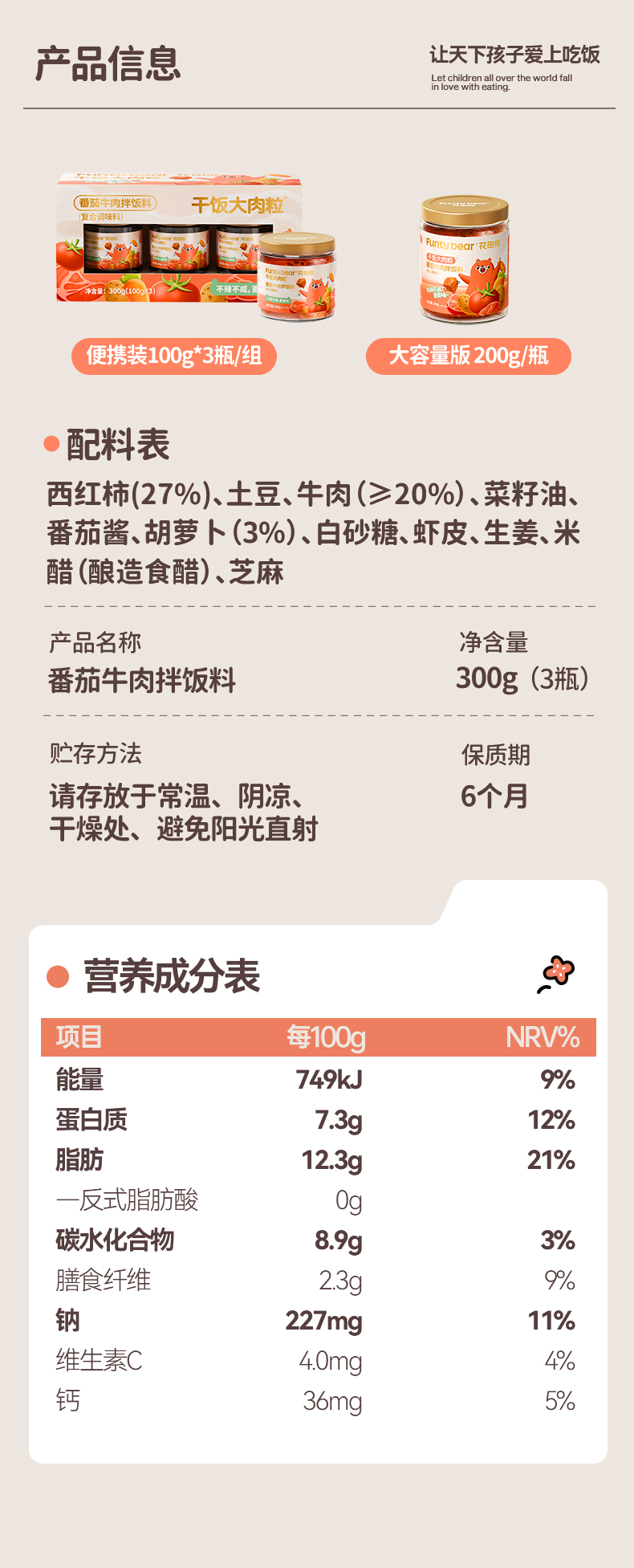 花田熊番茄牛肉酱儿童不辣拌饭酱宝宝即食小罐拌面酱下饭调味酱