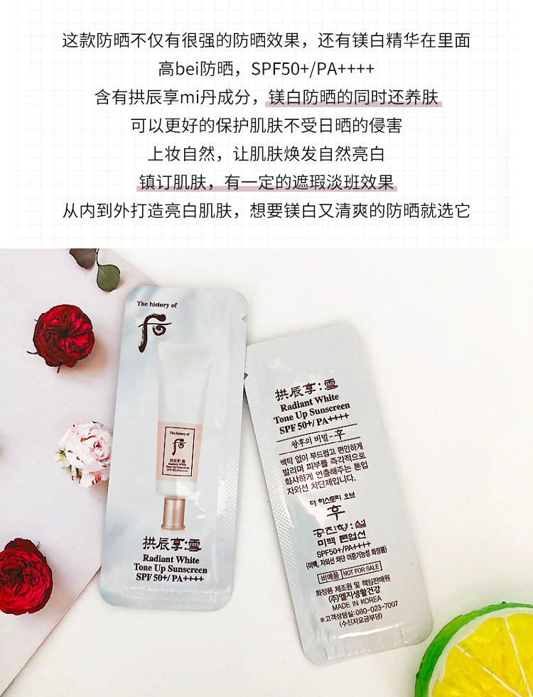 【商品名称】whoo后拱辰享雪美白多效防晒霜SPF50+ 1ml