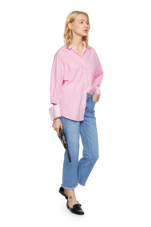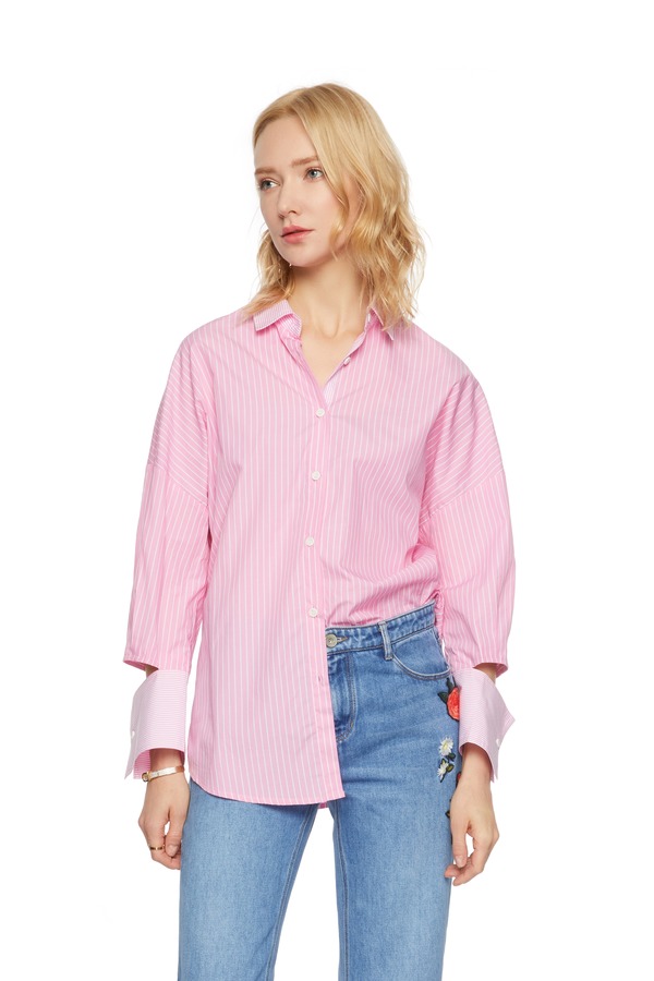 SUMMER & SAGE 开口设计条纹衬衣 5610