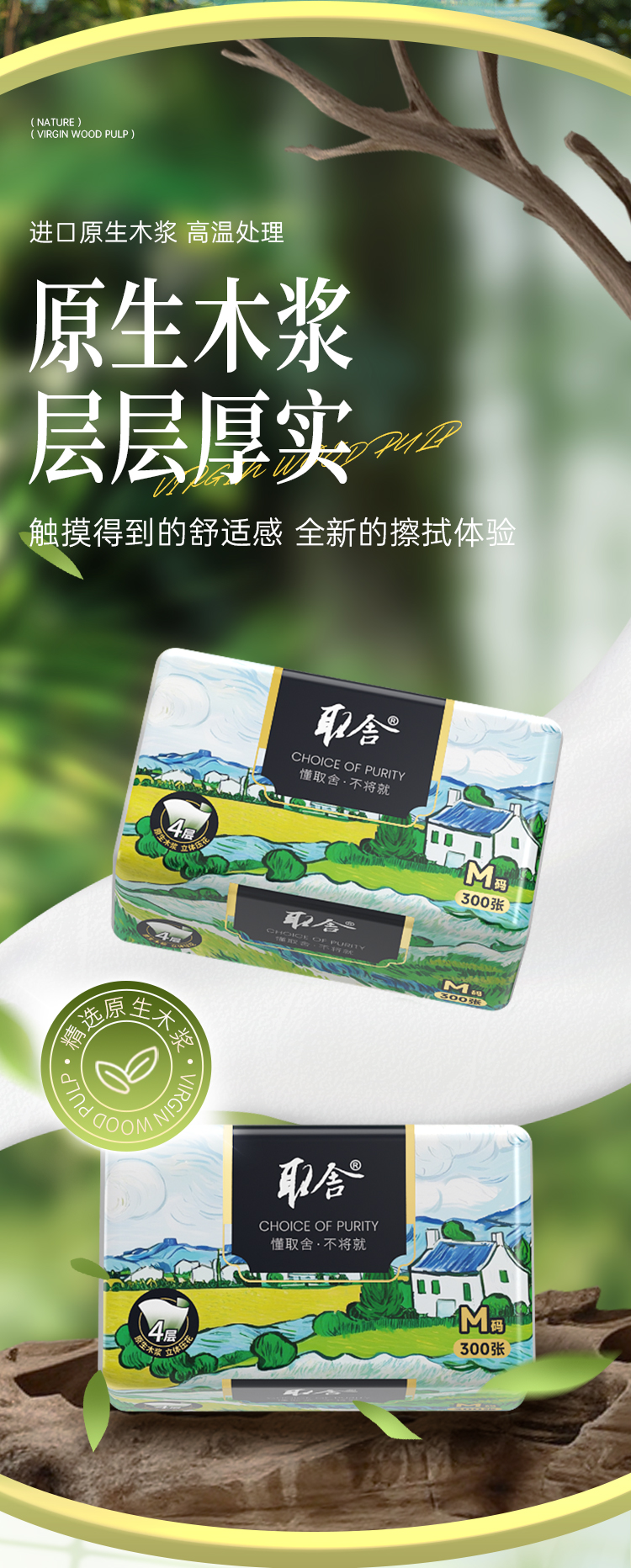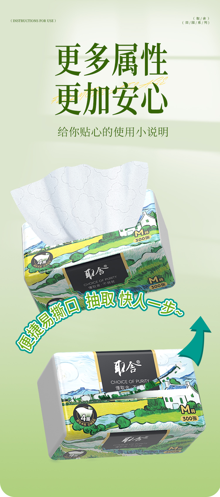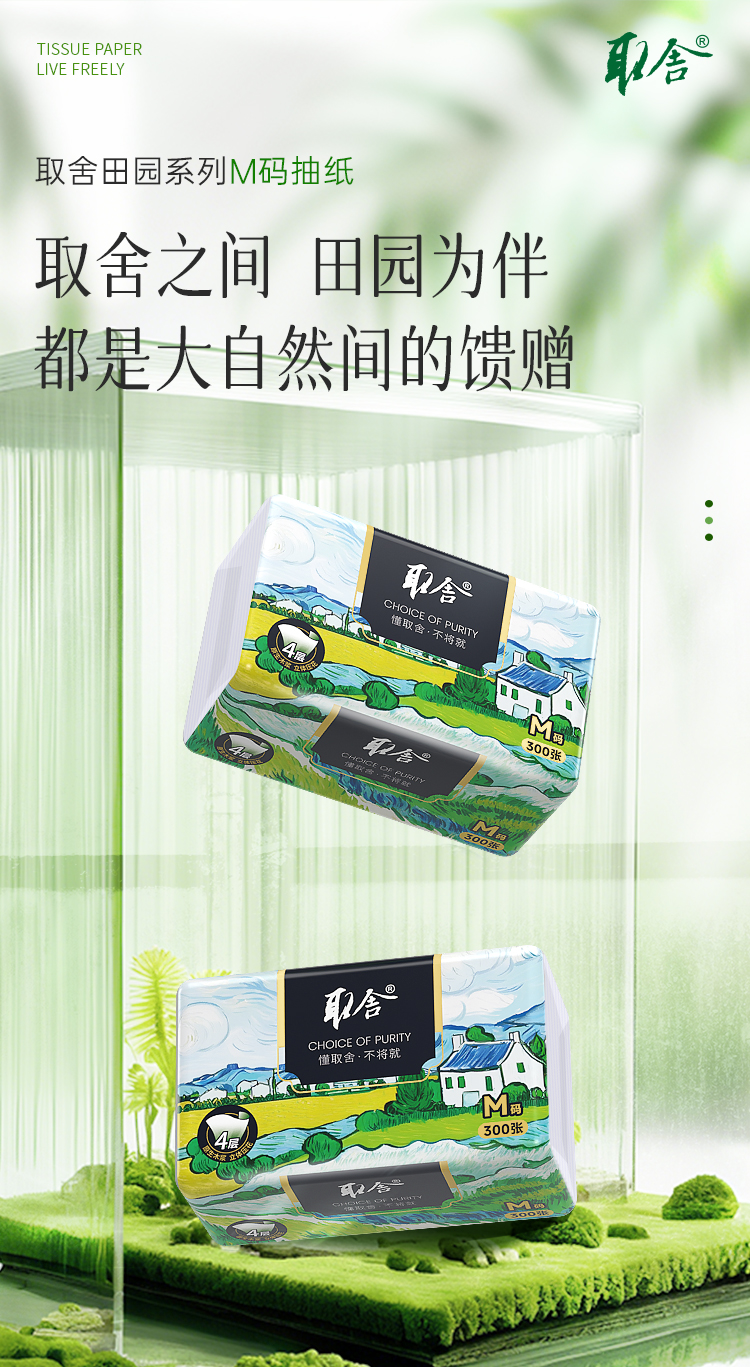 建发出品 取舍田园系列M码抽纸175mm*140mm*4层*75抽/包 立体压花 QDT8300-11