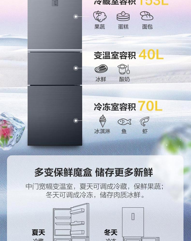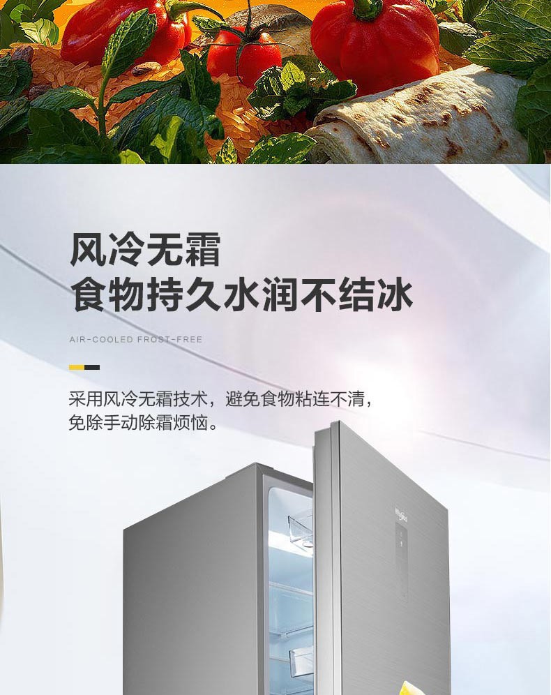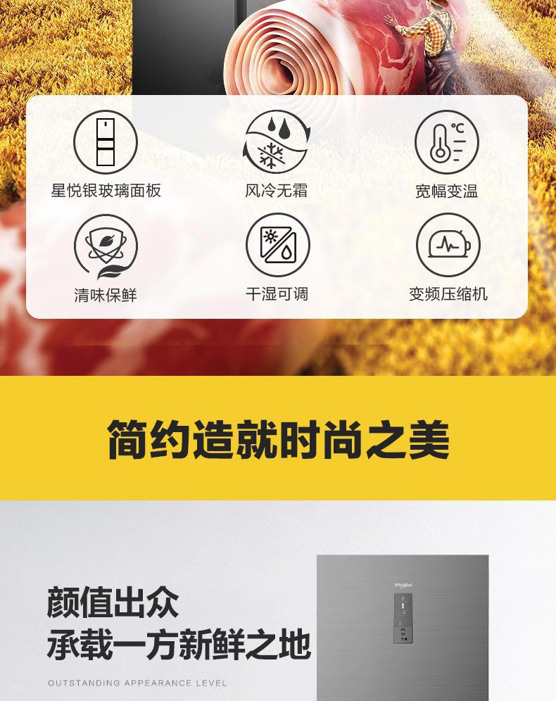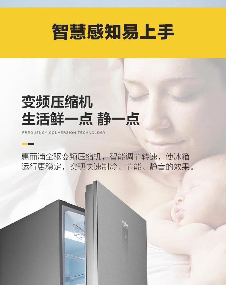 惠而浦(Whirlpool) BCD-263WT07GBWS星悦银 凌风系列三门变频冰箱