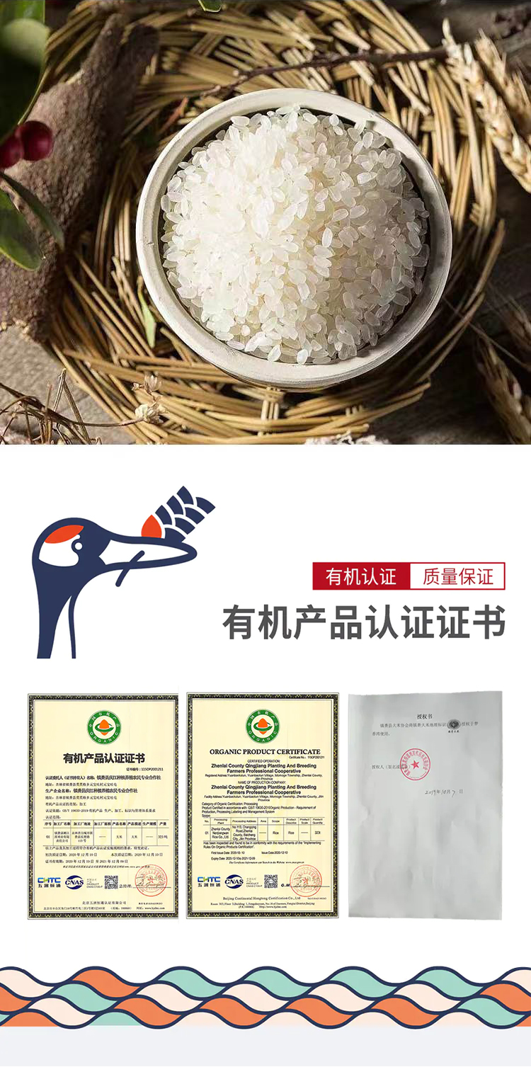 【严格有机作物规范】东北丹顶鹤之乡的蟹田有机香米5千克礼盒装
