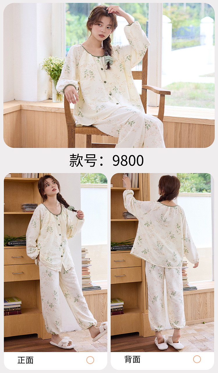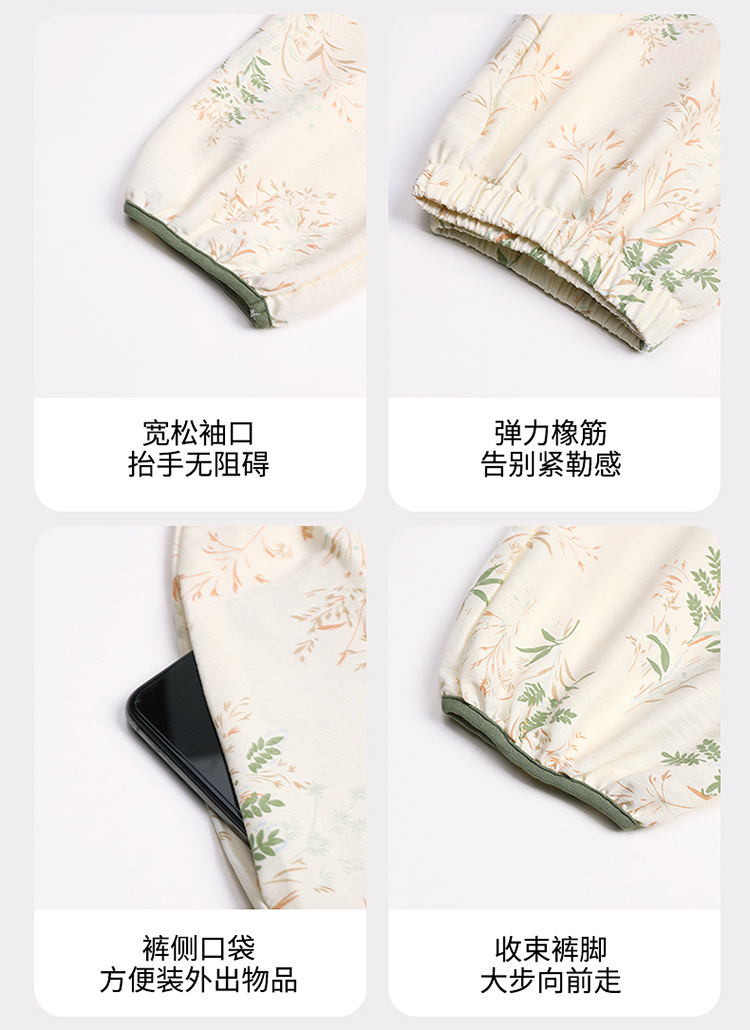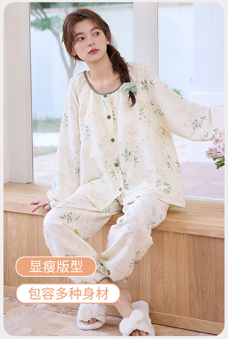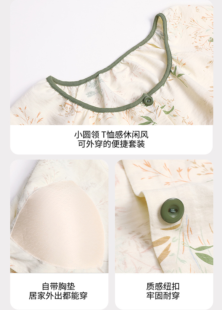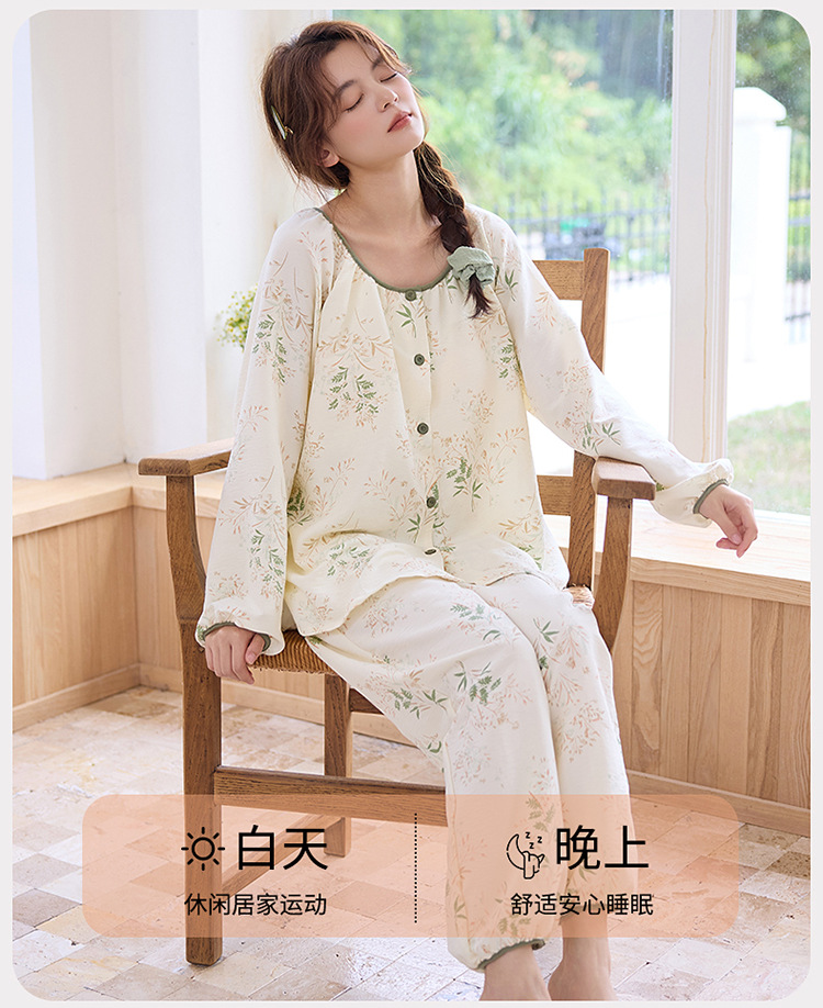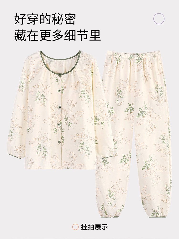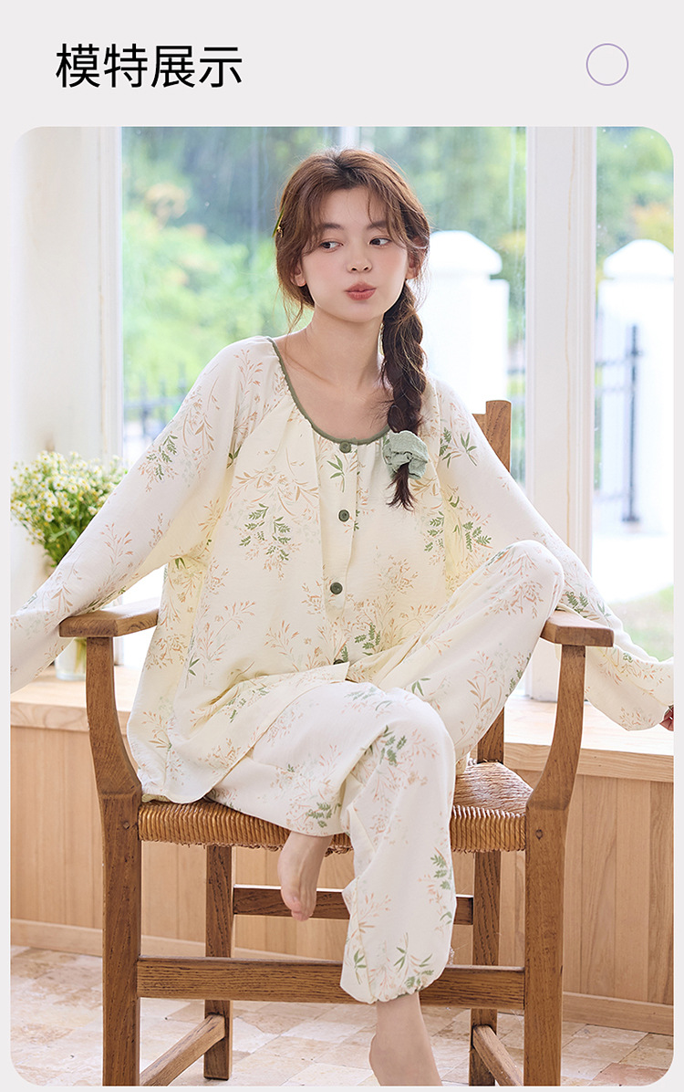 睡衣女春秋季云朵棉长袖长裤带胸垫可外穿秋冬国风大码家居服套装 商品图7