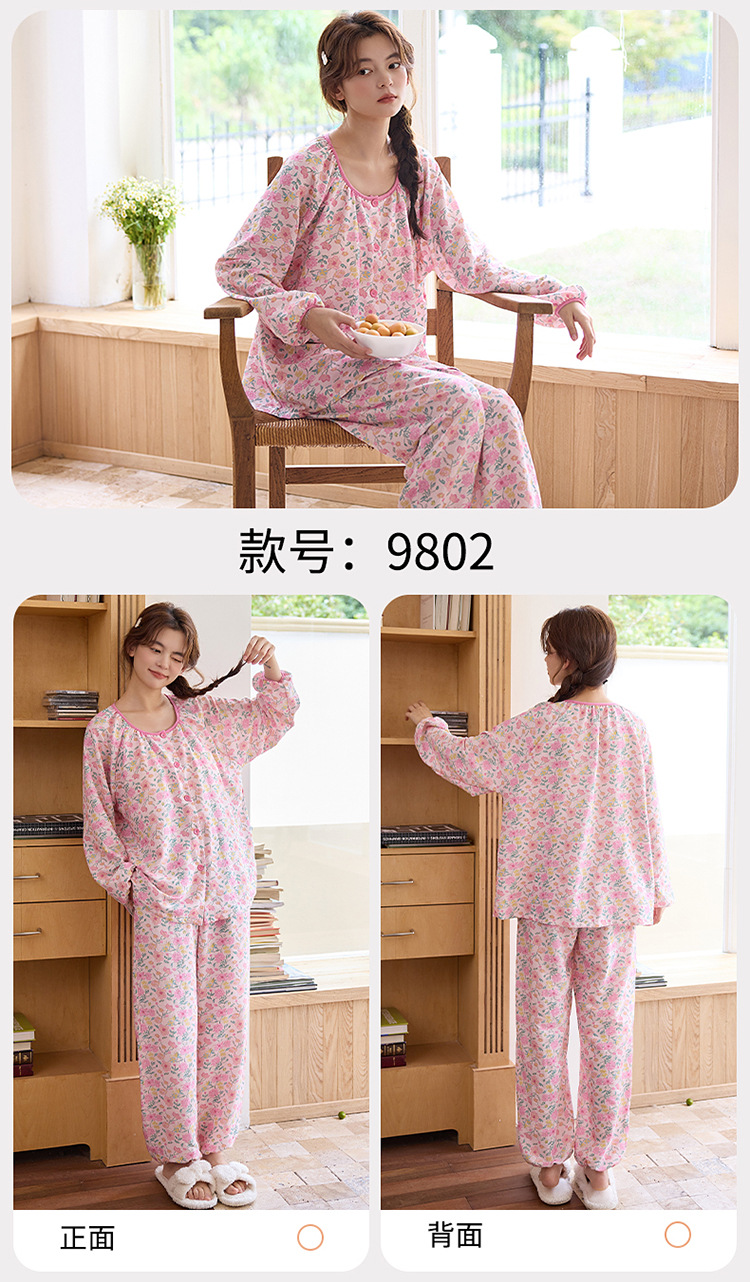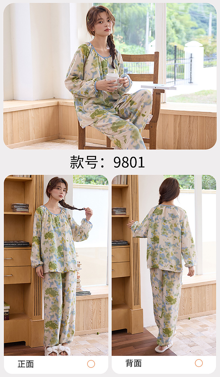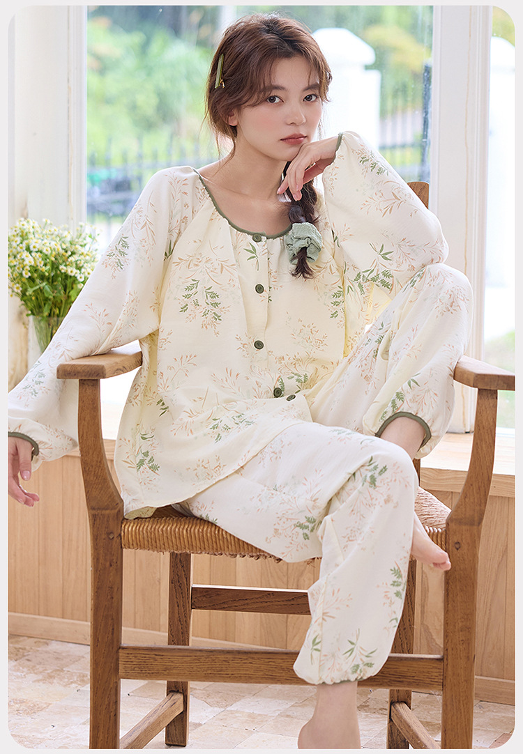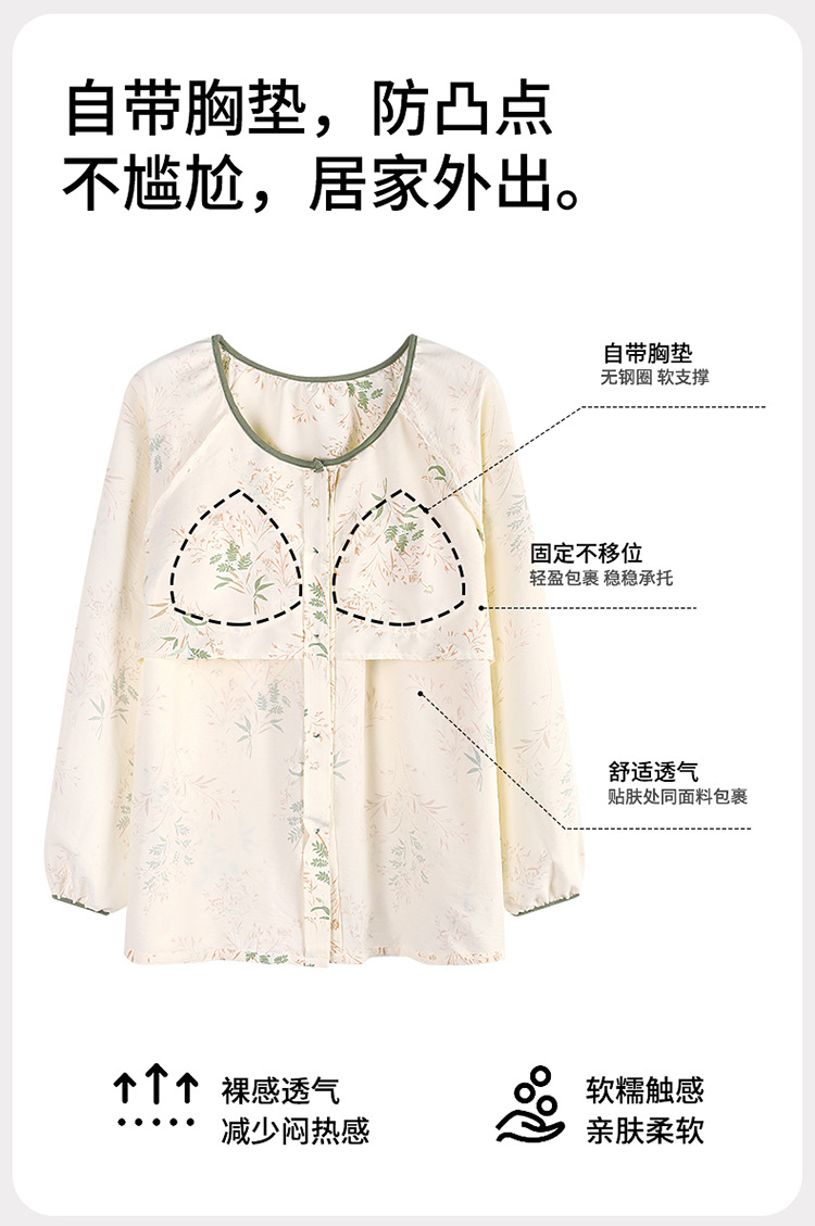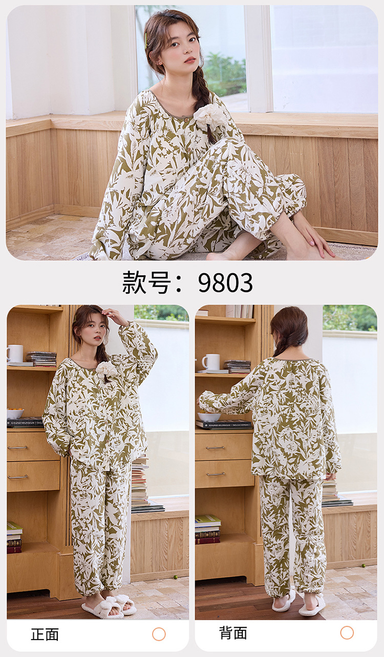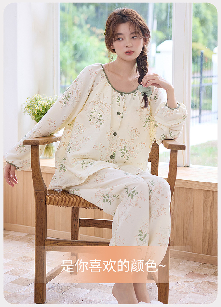 睡衣女春秋季云朵棉长袖长裤带胸垫可外穿秋冬国风大码家居服套装 商品图7