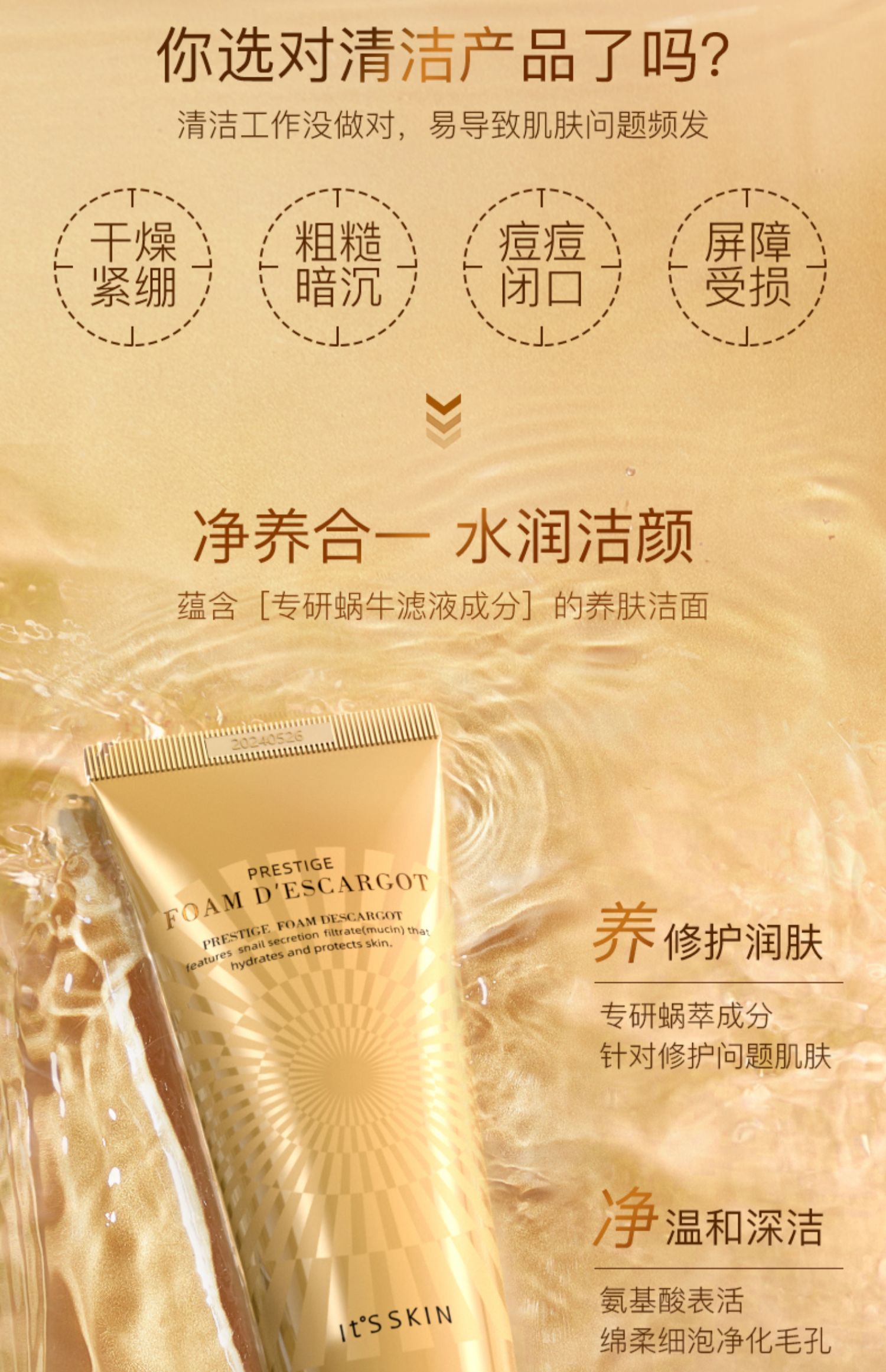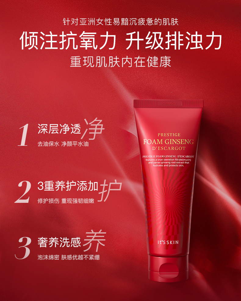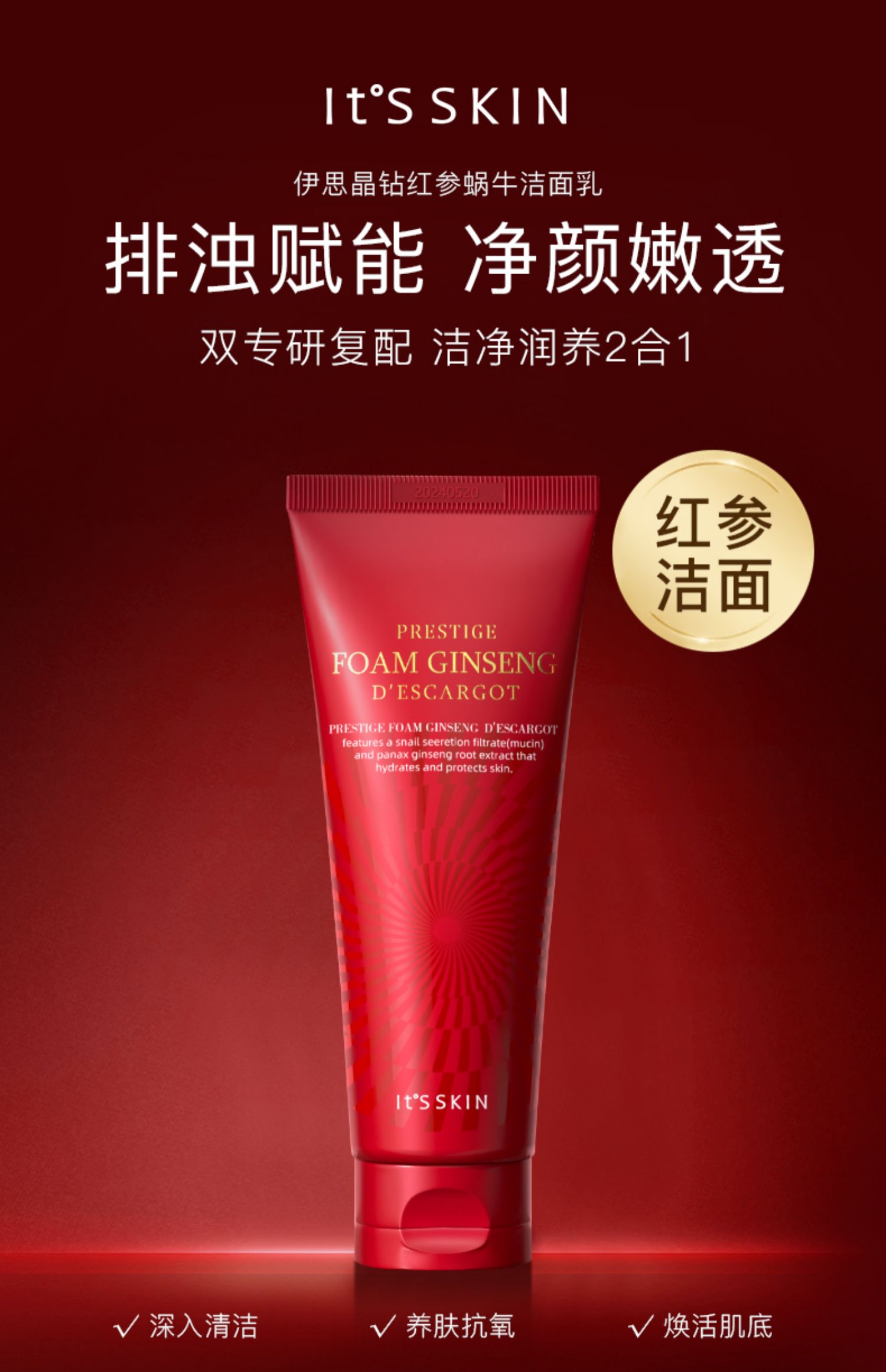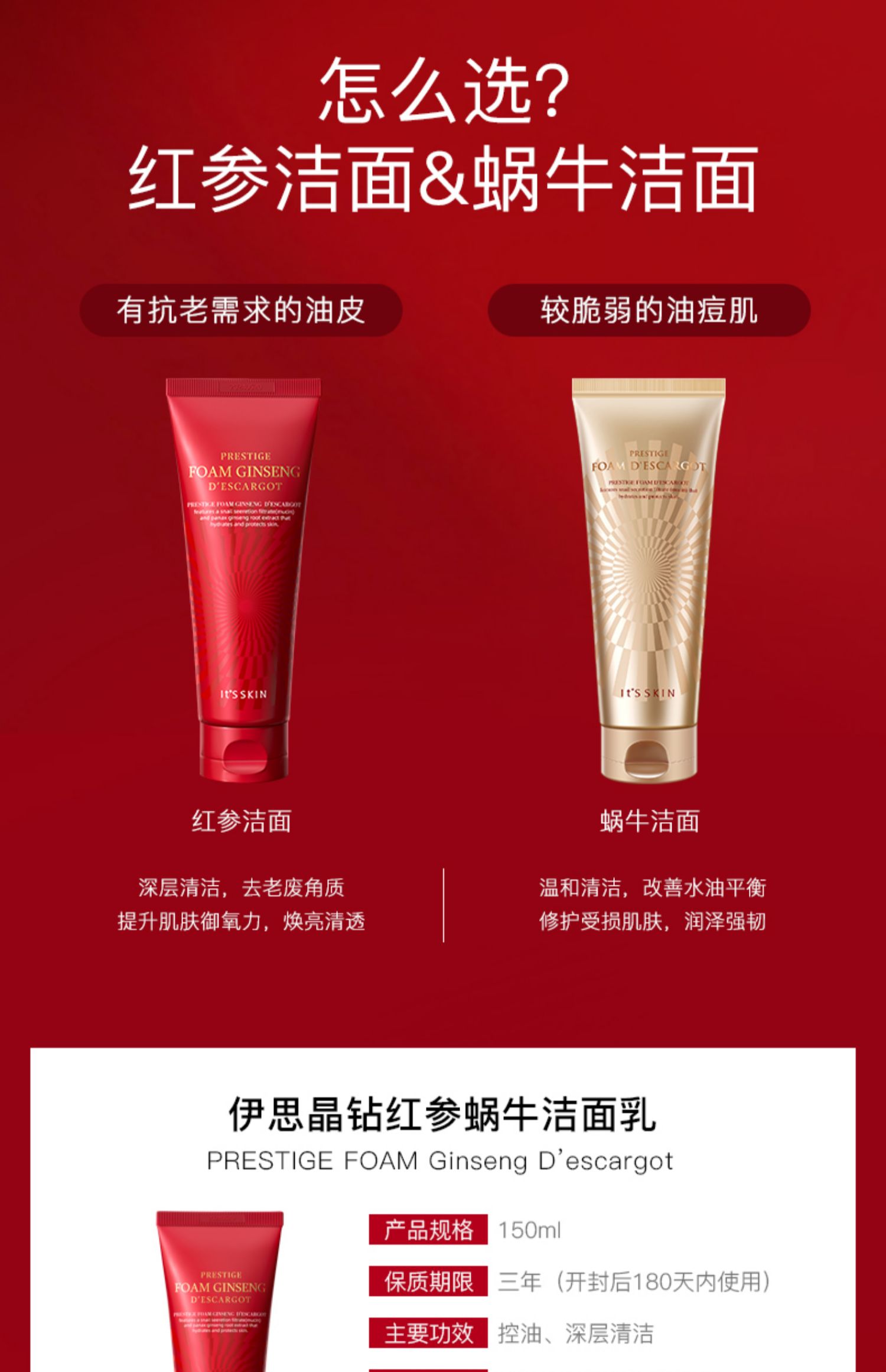 Itsskin伊思红参蜗牛洁面乳洗面奶女修护痘印抗初老 Itsskin伊思晶钻蜗牛洁面乳洗面奶女温和清洁控油