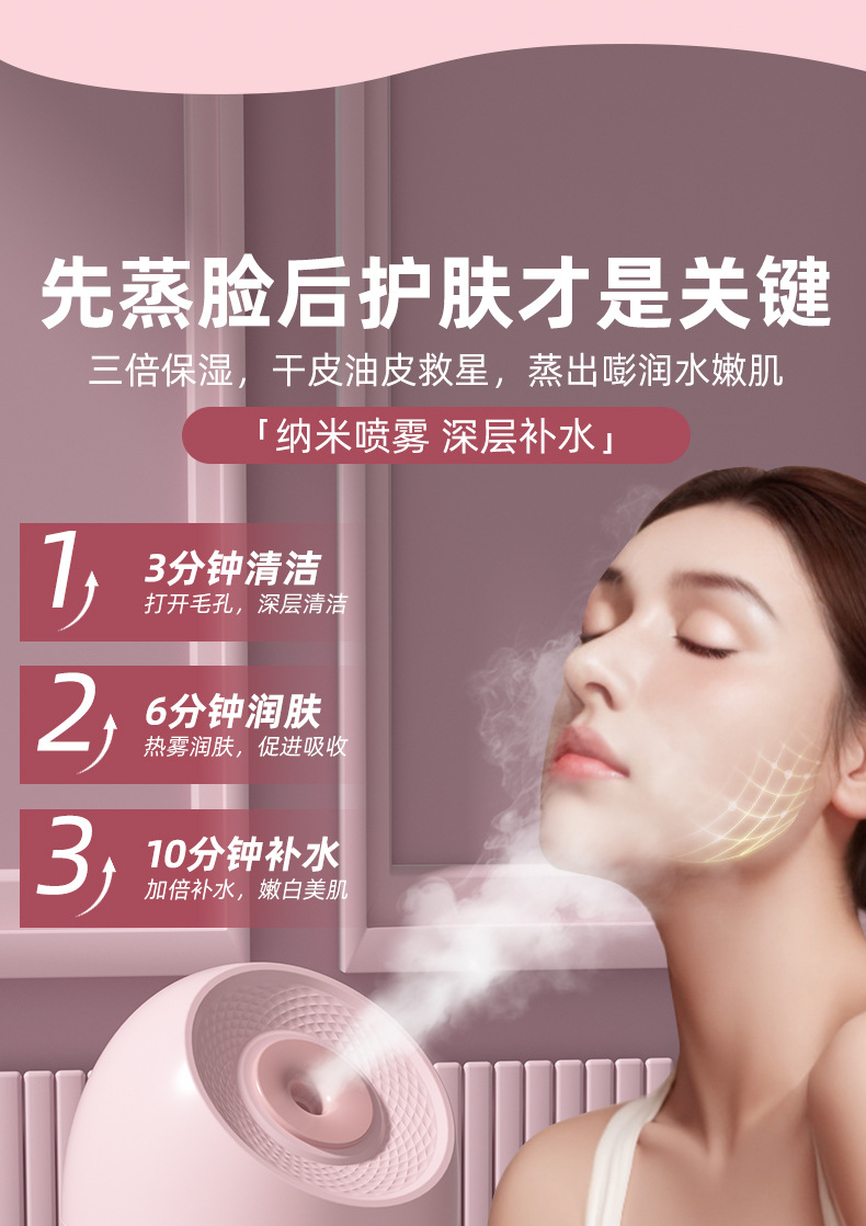 热喷蒸脸器蒸汽机 家用面部补水神器 纳米喷雾打开毛孔加湿器蒸脸仪