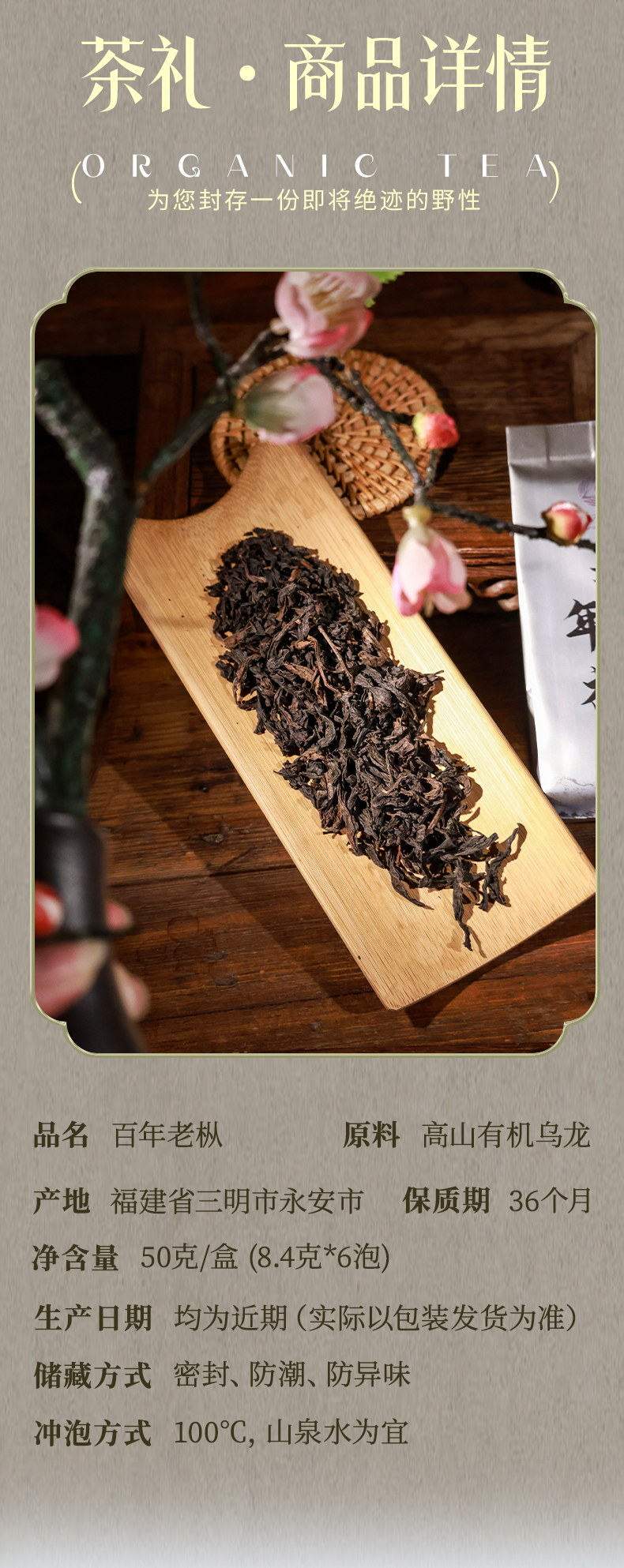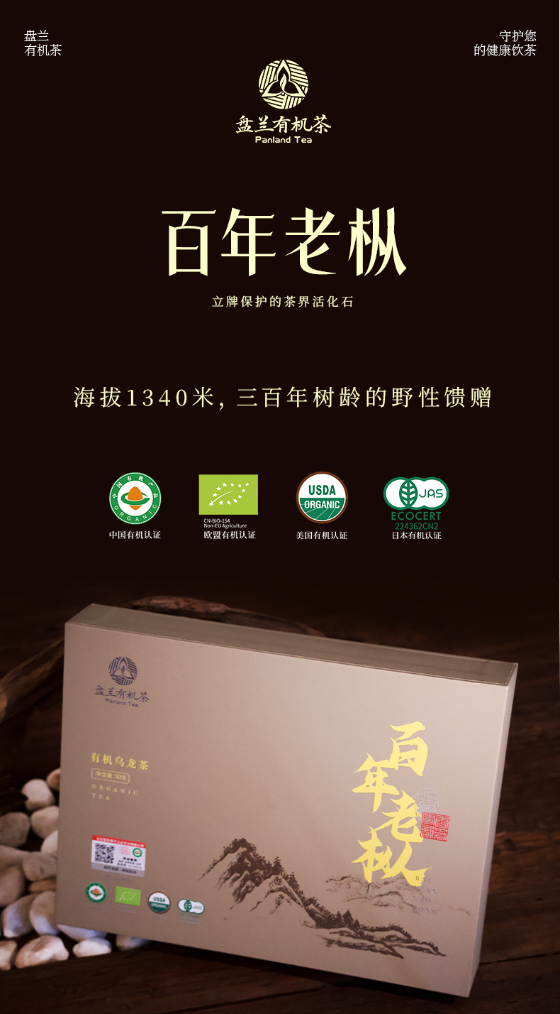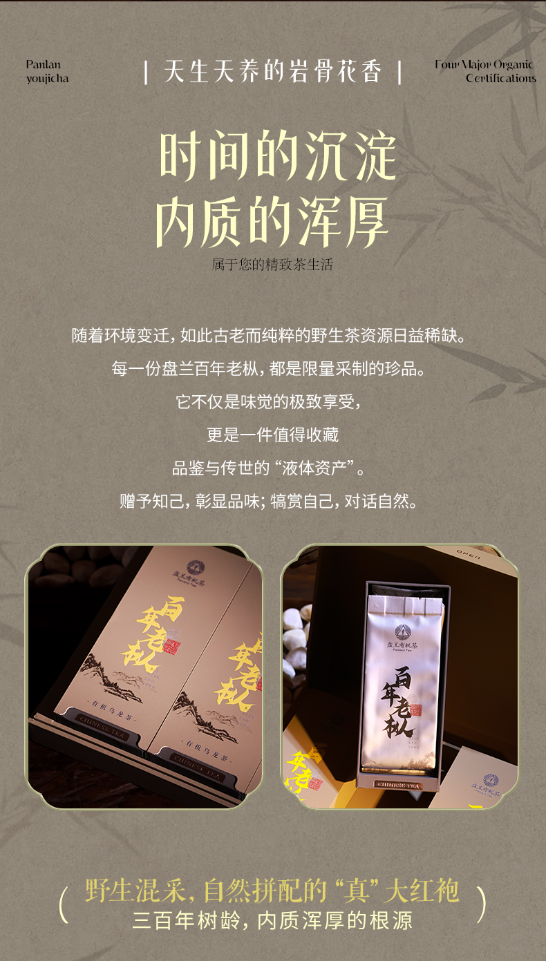 高山有机乌龙茶 岩茶 百年老枞小份精致礼盒装 50克 6泡/盒