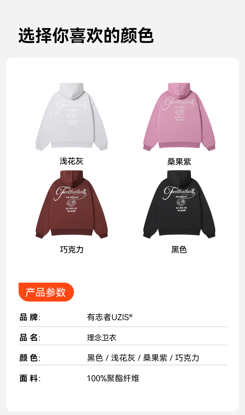 有志者UZIS 美式潮流运动卫衣男秋季休闲宽松篮球连帽套头衫[理念