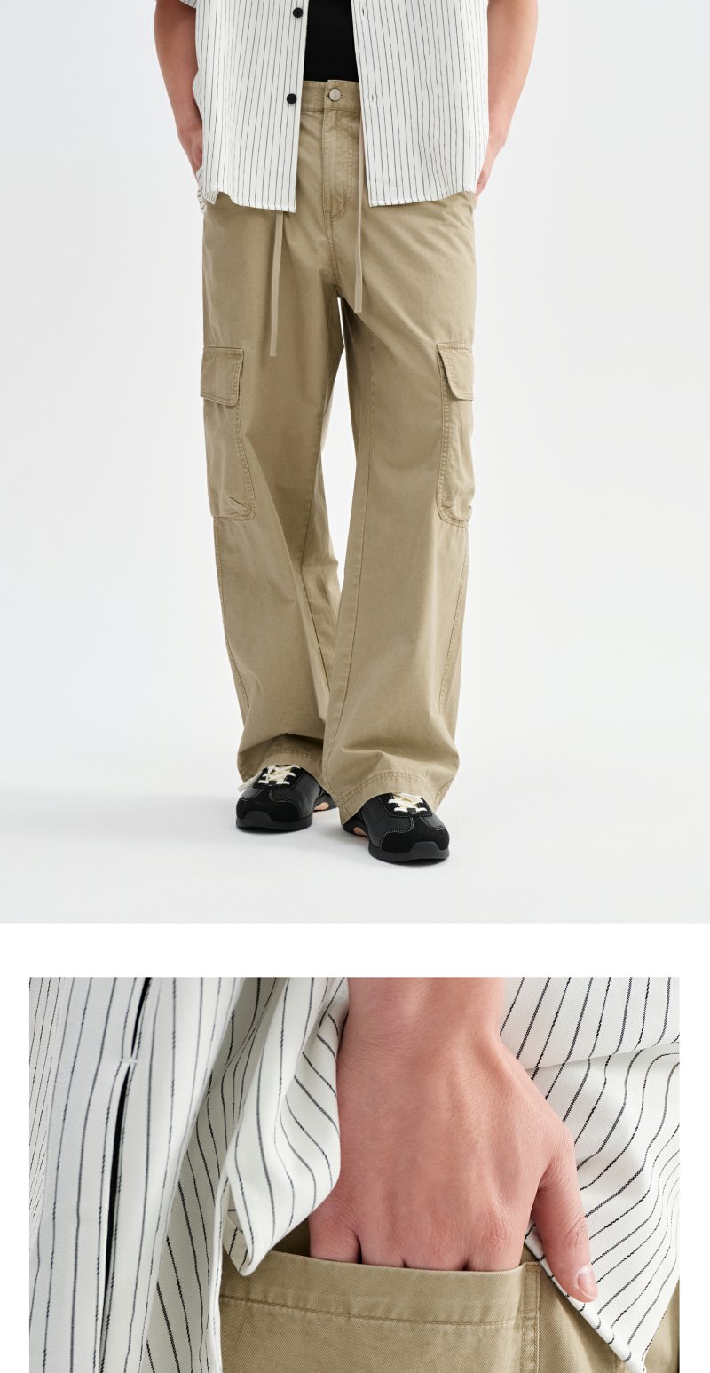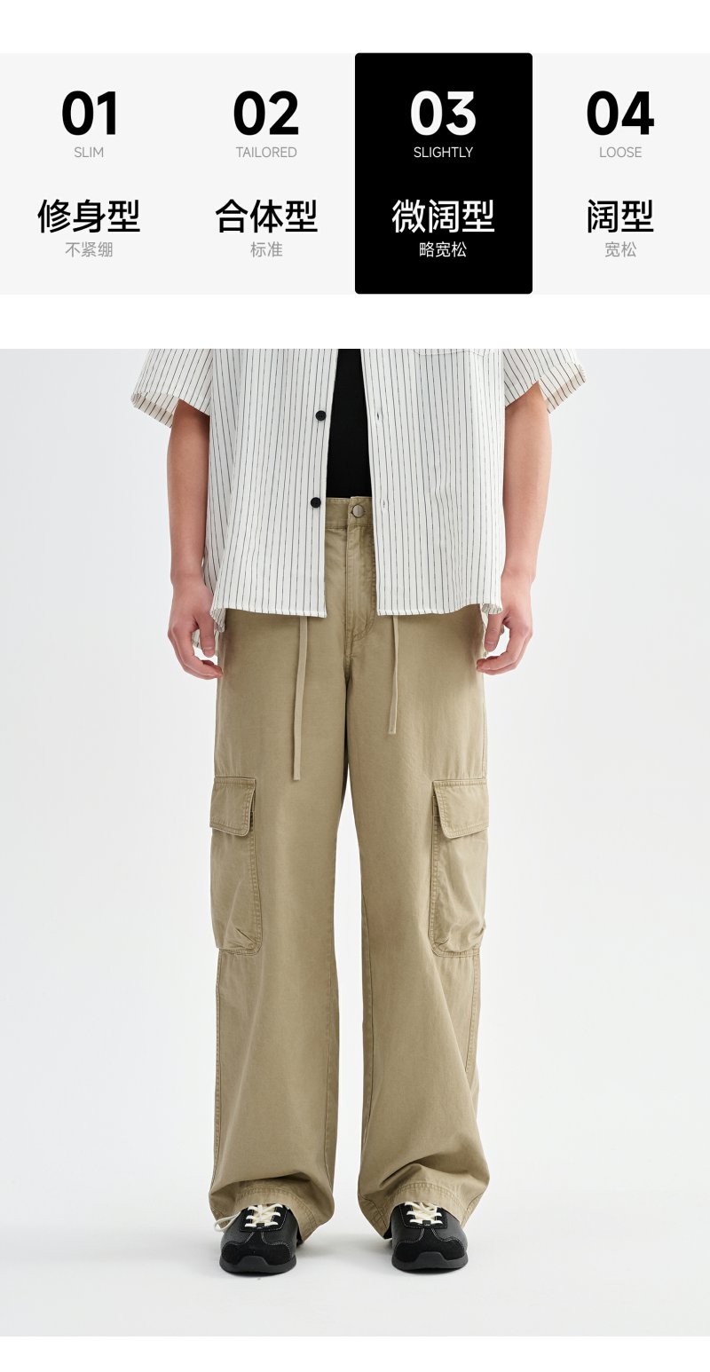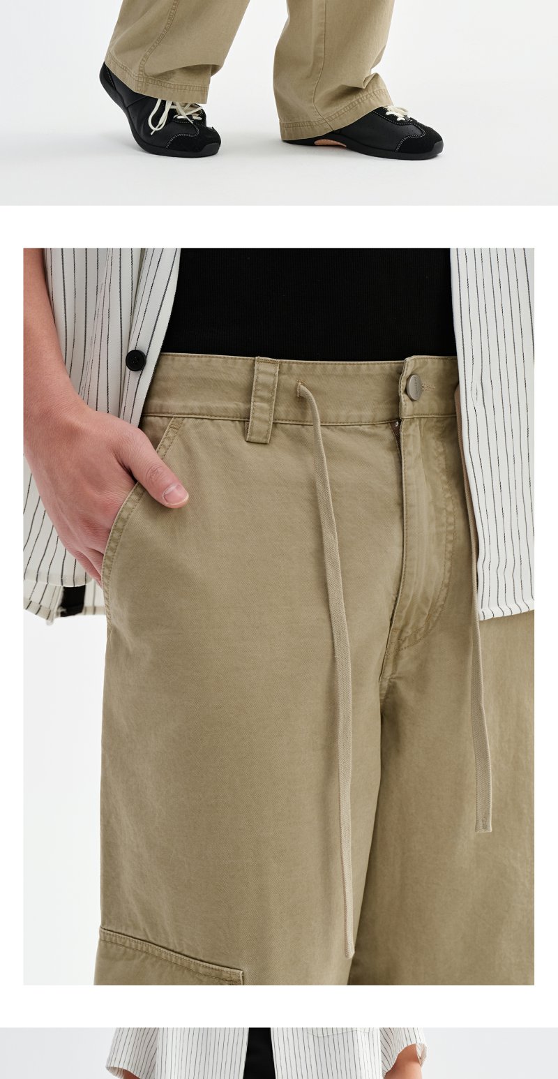 CHINISM赤尘 毛感抽绳工装裤男2025夏季纯棉酵洗休闲裤男士裤子