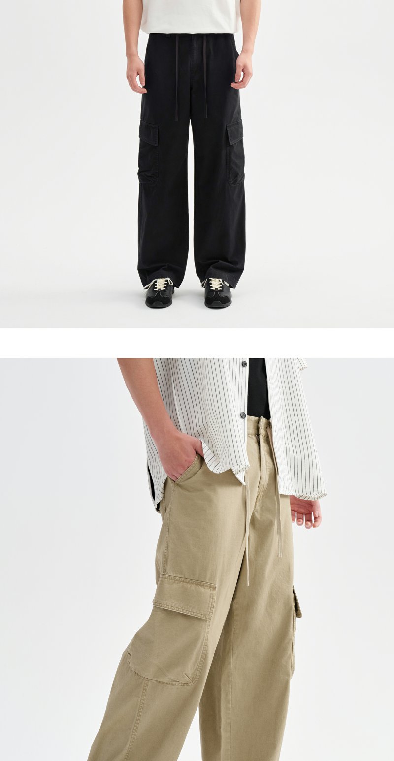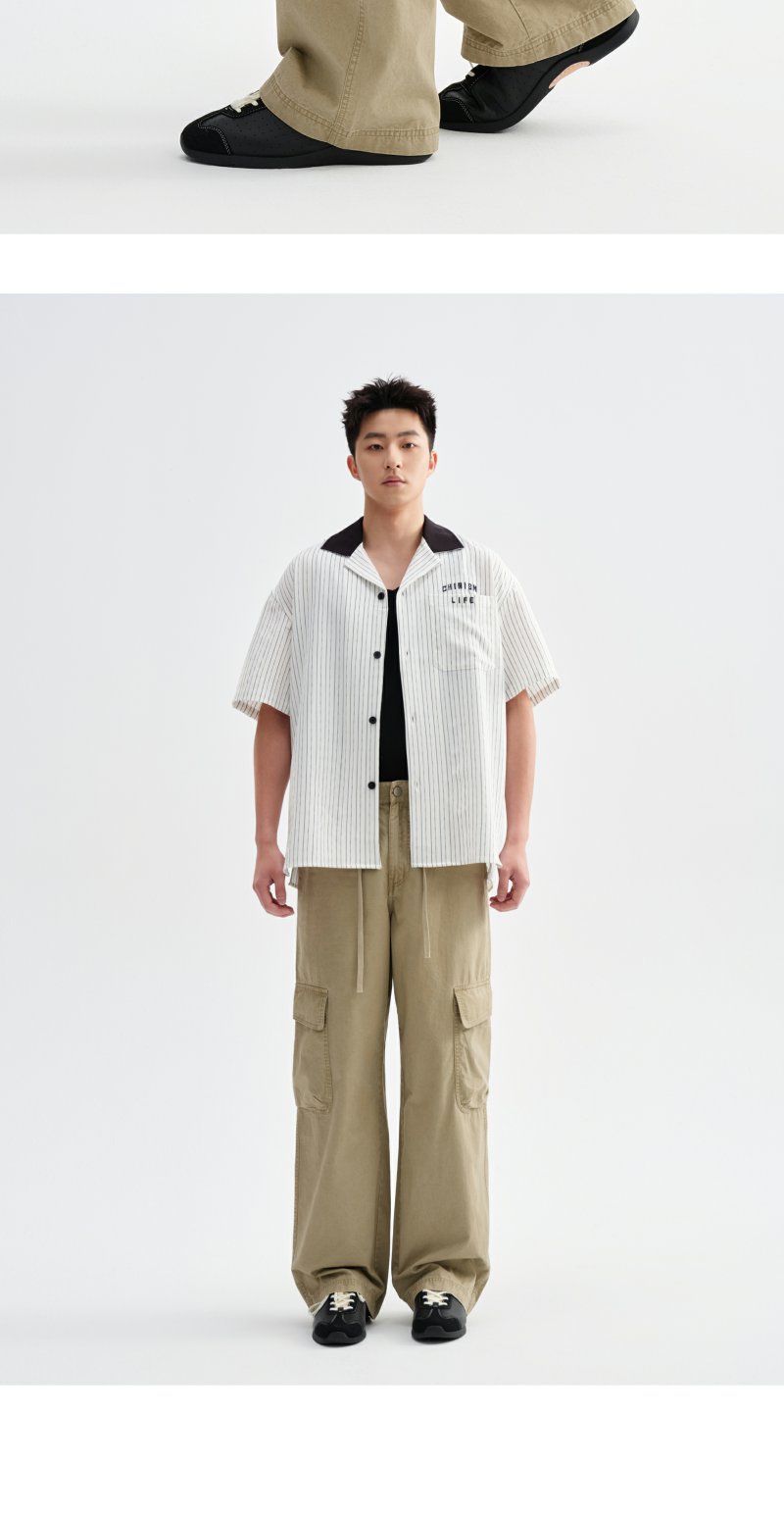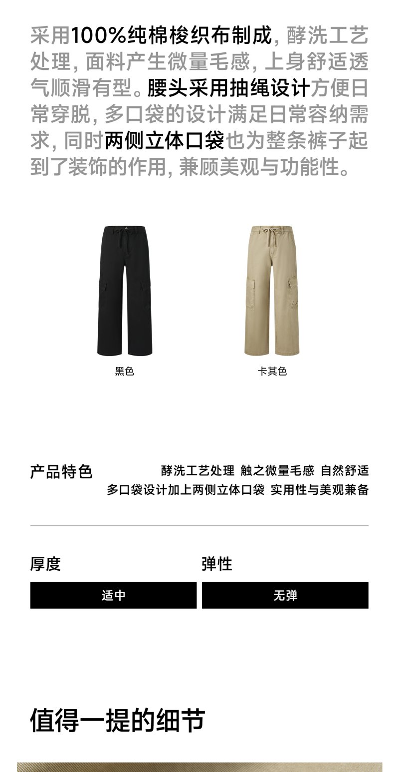 CHINISM赤尘 毛感抽绳工装裤男2025夏季纯棉酵洗休闲裤男士裤子