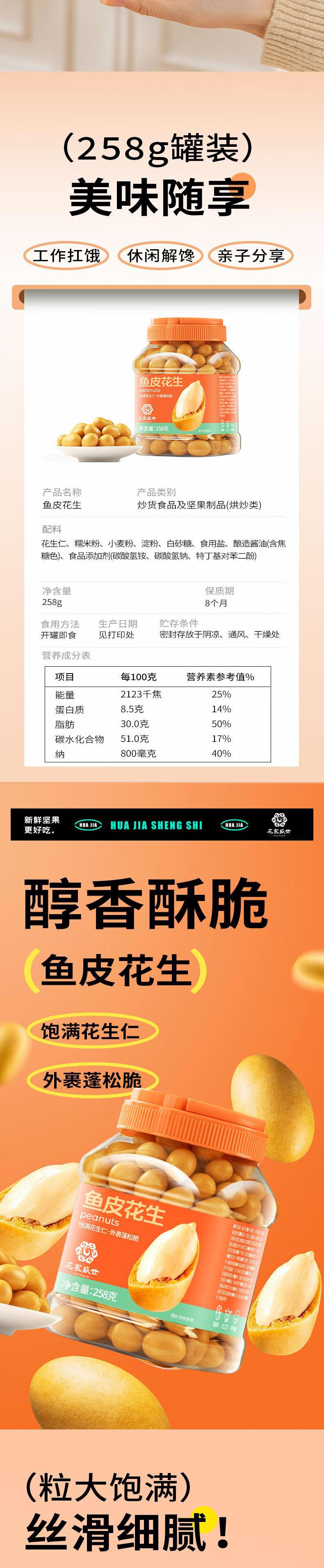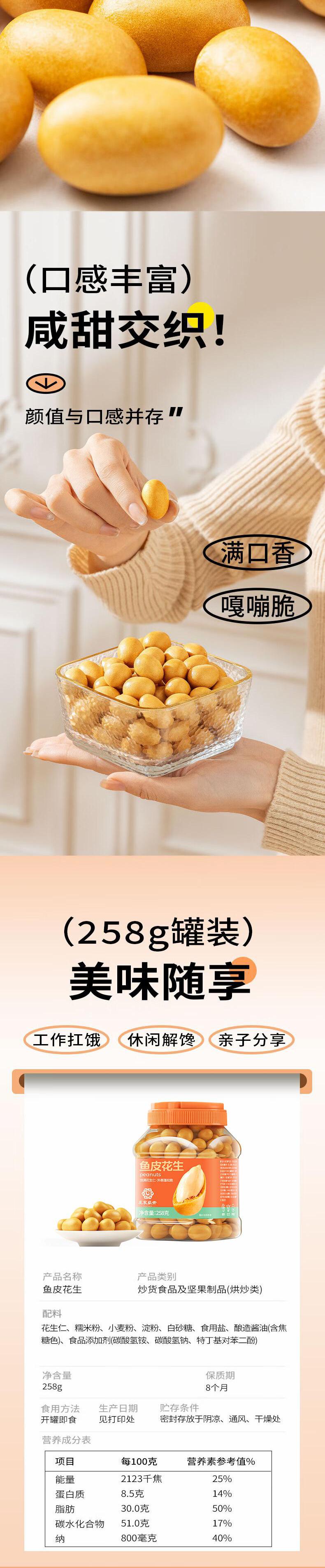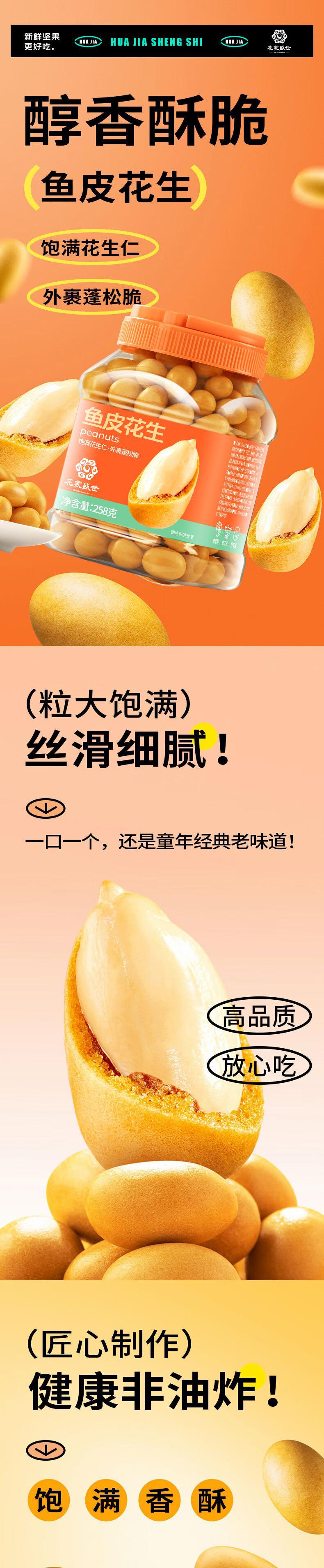 【自营】花家盛世 鱼皮花生258g多巴胺罐装规格 HJSSJG010